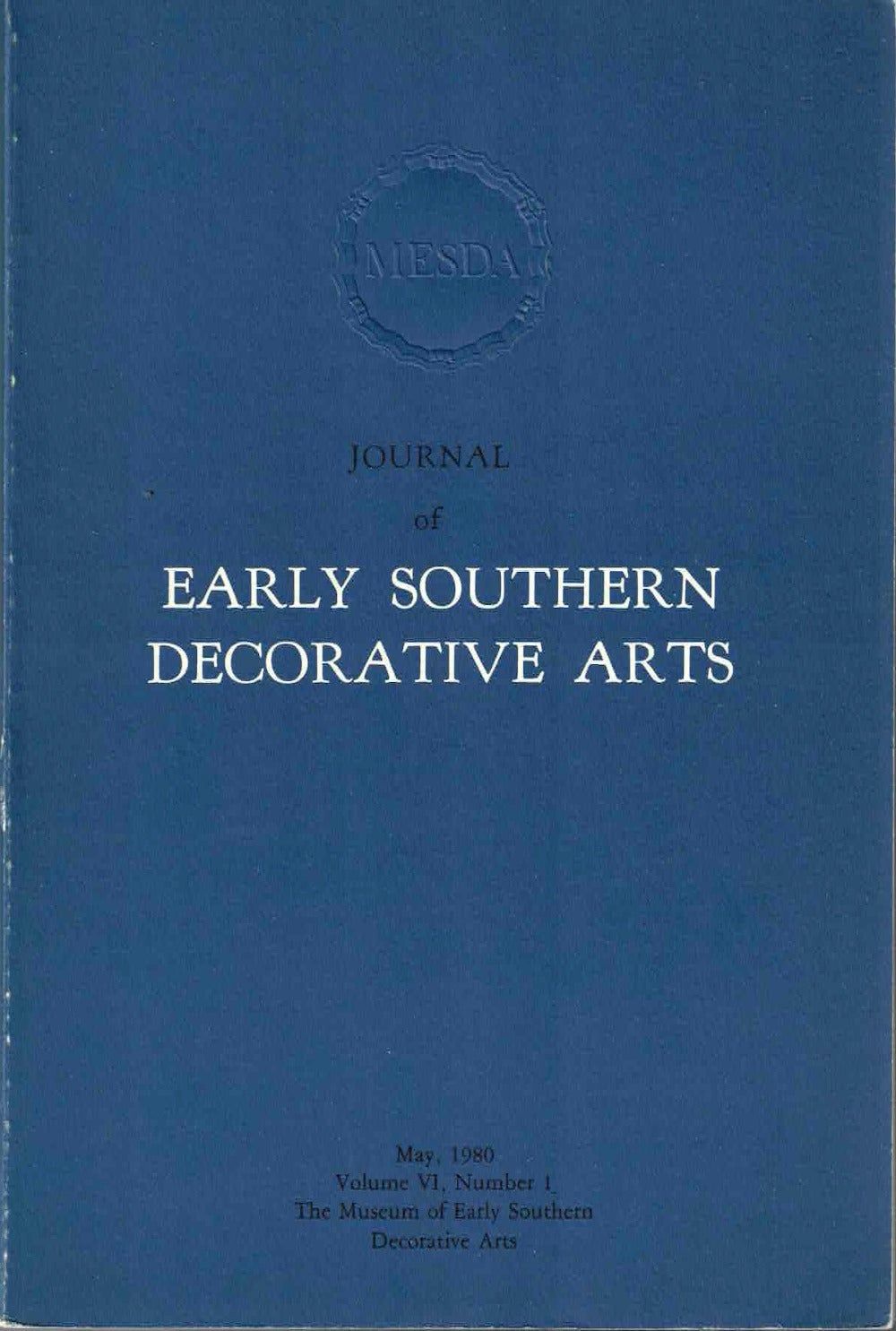 Journal of Early Southern Decorative Arts, May 1980, Volume VI, Number 1