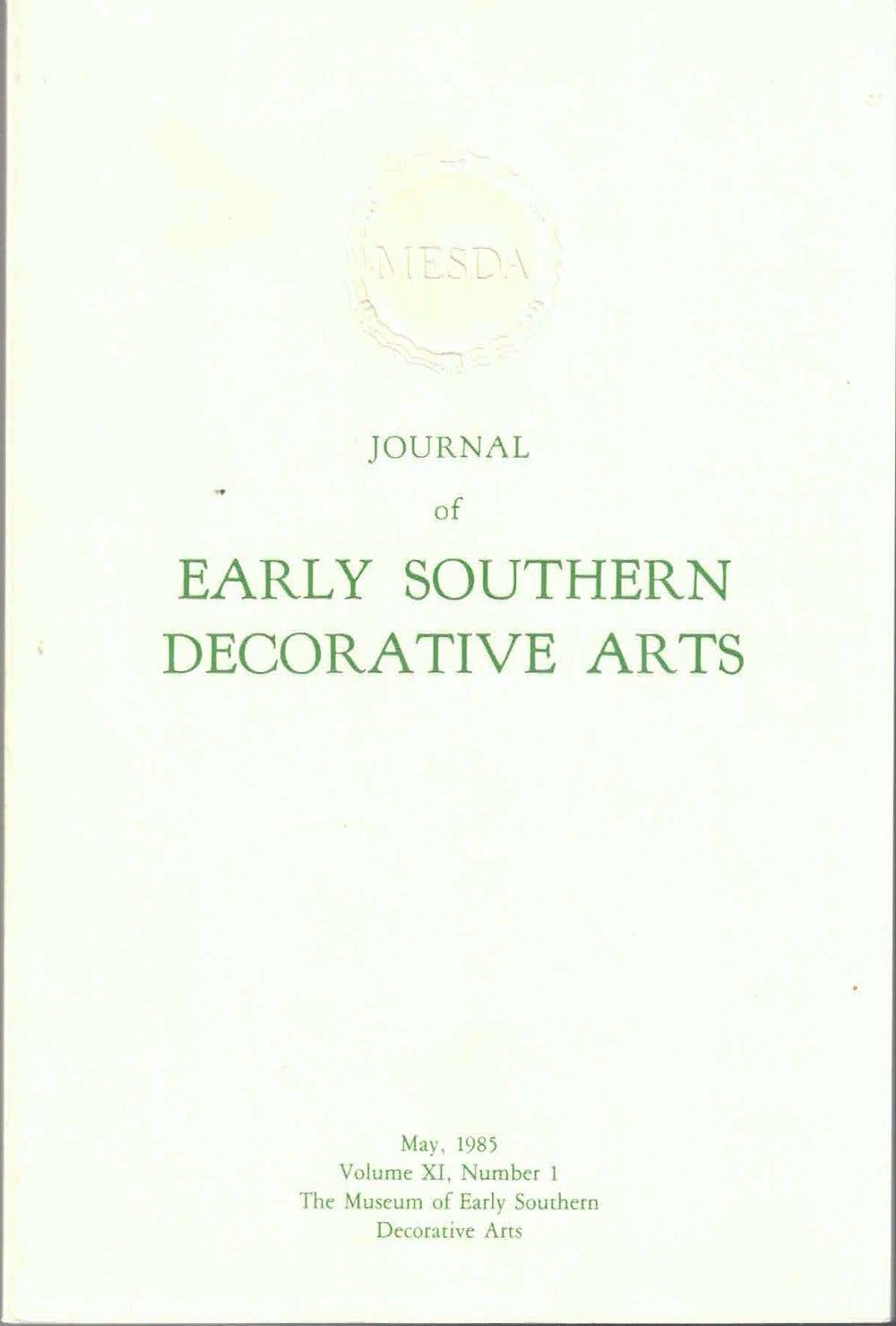 Journal of Early Southern Decorative Arts, May 1985, Volume XI, Number 1