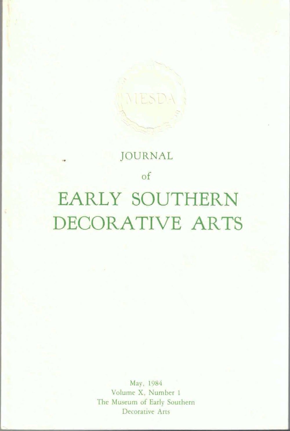 Journal of Early Southern Decorative Arts, May 1984, Volume X, Number 1