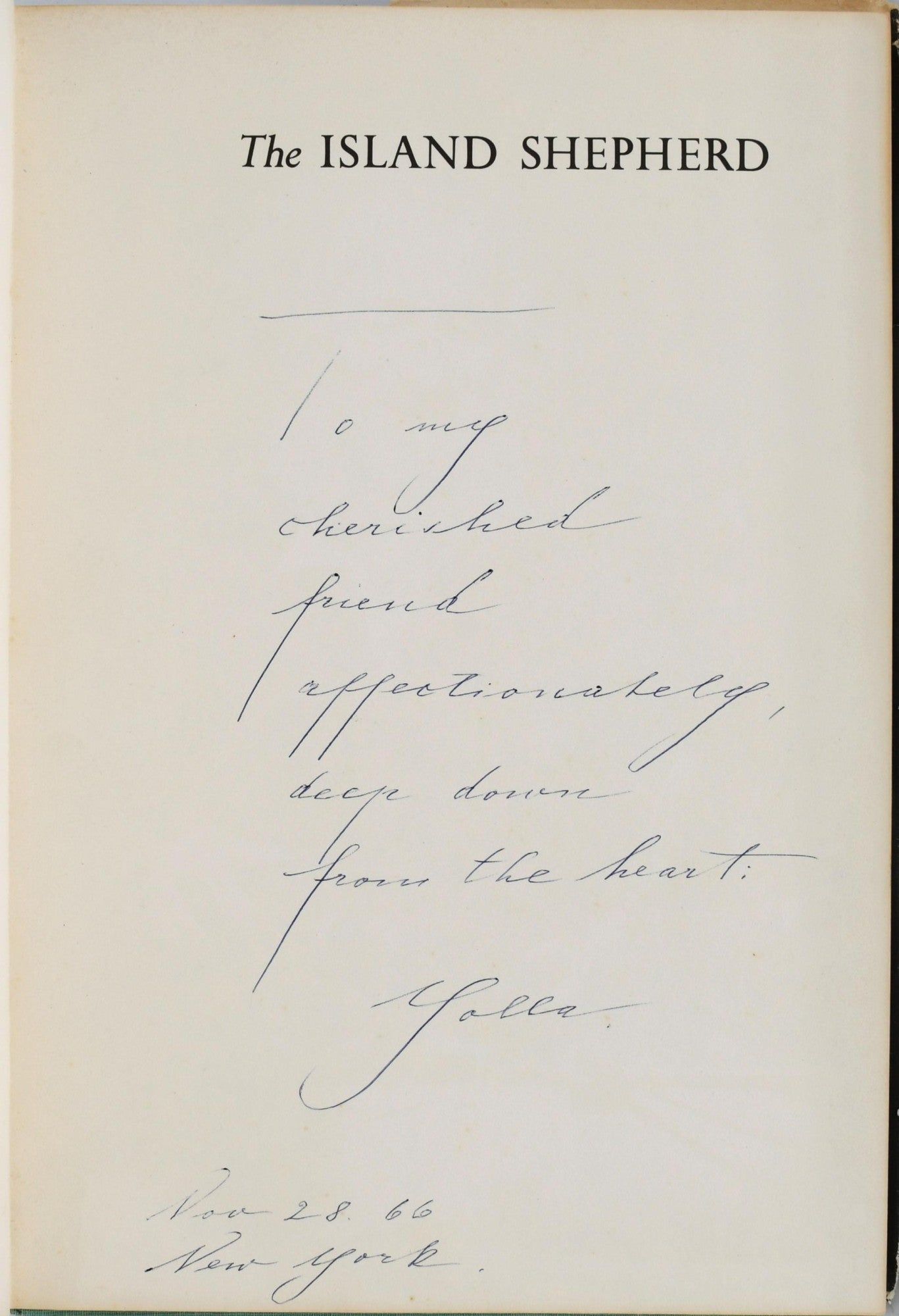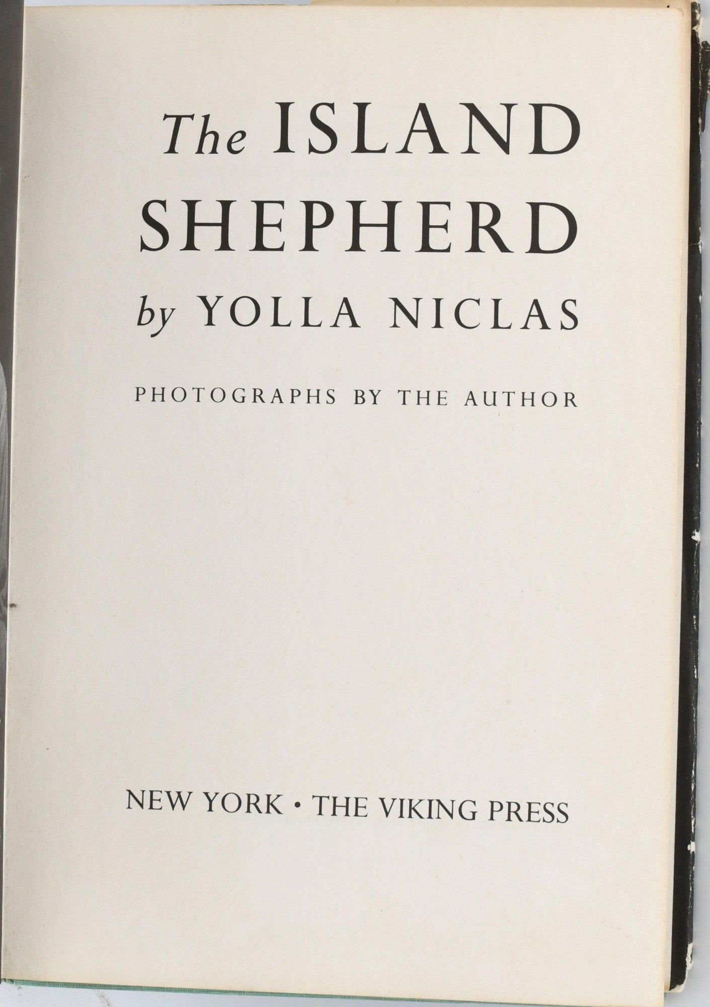 New York: The Viking Press, 1959. First Edition. Hard Cover. Very Good binding/Fair dust jacket. Signed. Large 8vo.; in the publisher’s green cloth, with a faint stain to the upper board; with dustjacket; the dustjacket has not been price-clipped but is quite worn and has loss.~~This copy is signed by Yolla Niclas who wrote the text and took the photographic illustrations. The inscription is lovely: “To my | cherished | friend | affectionately, | deep down | from the heart. | Yolla | Nov. 28. 66 | New York”.~~We know not who the recipient of this presentation inscription was. It is beautfiul, we think.~~Laid in is an original color photograph of the Island Shepherd himself, mounted on board.~~. Very Good binding / Fair dust jacket.