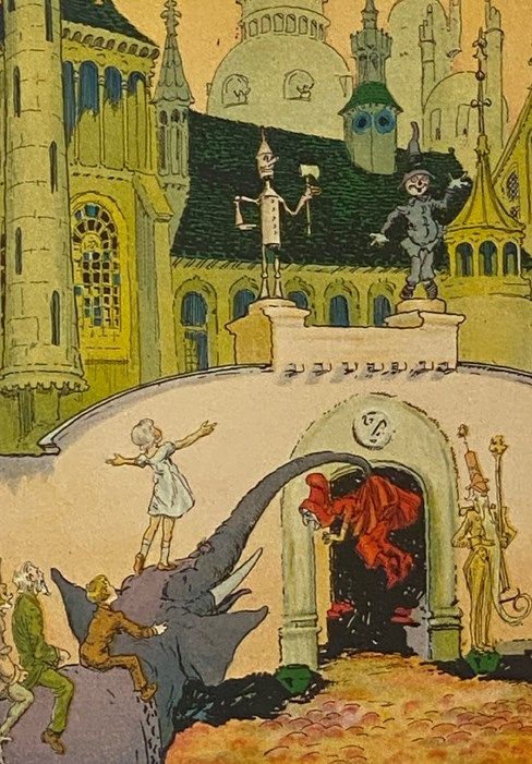 Chicago: The Reilly & Lee Co, 1925. First Edition. Hard Cover. Good/No Jacket. 9x6x1. Neill, John R. First edition, later state, with weak 'k' on p. 193, line 4 (Bienvenue p. 107). Includes all 12 color plates. Boards soiled and lightly foxed, edges foxed, 2 inches of front free endpaper corner removed, ink gift note opposite frontispiece. 1925 Hard Cover. 280, [2] pp. 8vo. Blue cloth, color picture plate mounted on front board, illustrated endpapers, color plates and black-and-white illustrations by John R. Neill. The fifth book in the continuation of Baum's immortal Oz series by Ruth Plumly Thompson, whose books are now considered part of the official canon - as such, it is considered the nineteenth book in the series overall.