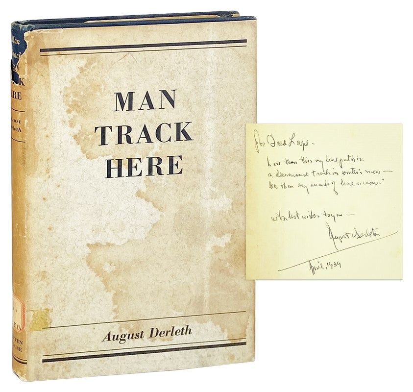 Inscribed and signed by Derleth on front free endpaper: "For Fred Lape - Less than this my lone path is: a deermouse track in winter's snow - less than any mark of hare or crow. With best wishes to you - August Derleth / April, 1939.