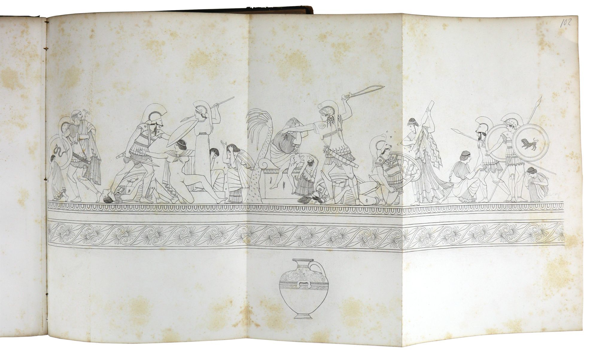 Boards significantly scuffed, plates unevenly foxed, a later owner has numbered the plates in pencil at top fore-edge corner of each leaf, contemporary ownership signature of a William Henry Plummer to front free endpaper and later ex libris of a Charles George Moller Jr. to front pastedown; overall a Good to Very Good, sound copy overall.
