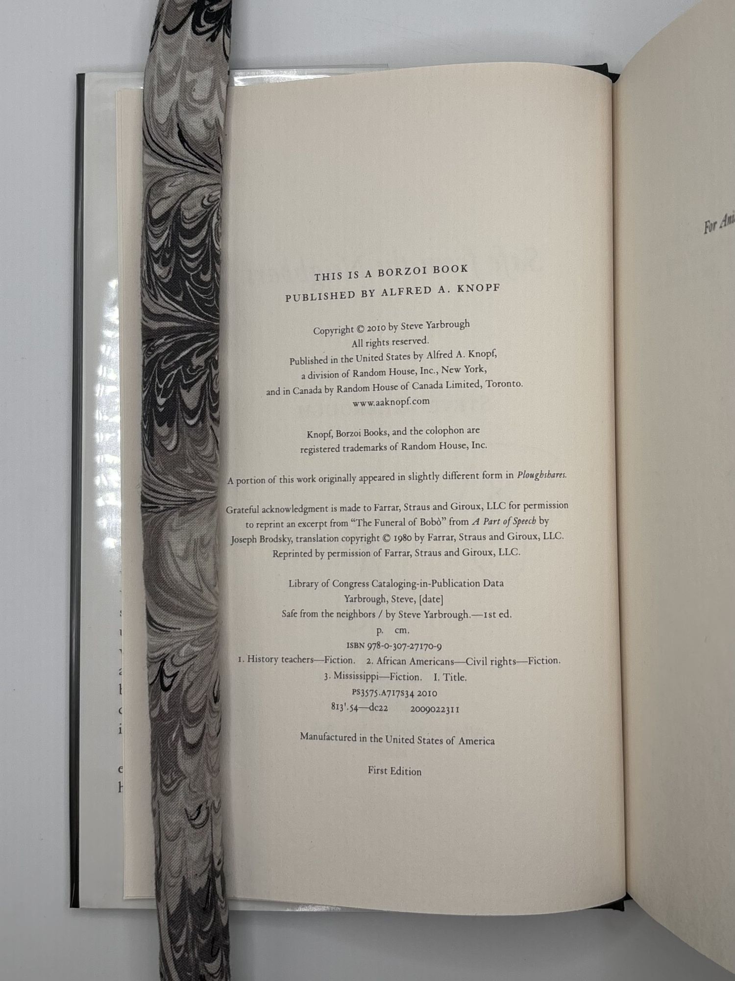 New York, New York: Borzoi, 2010. First Edition, First Printing. Hardcover. Octavo, 259 pages. In Very Good condition with Near Fine condition dust jacket. Spine is grey storm clouds with white lettering. Dust jacket protected by mylar covering, price uncut: "$25.95" on front flap. Boards have mild shelving wear along spine head and tail. Signed flat by Steve Yarbrough on title page. Shelved in hallway. 1388949. Special Collections.