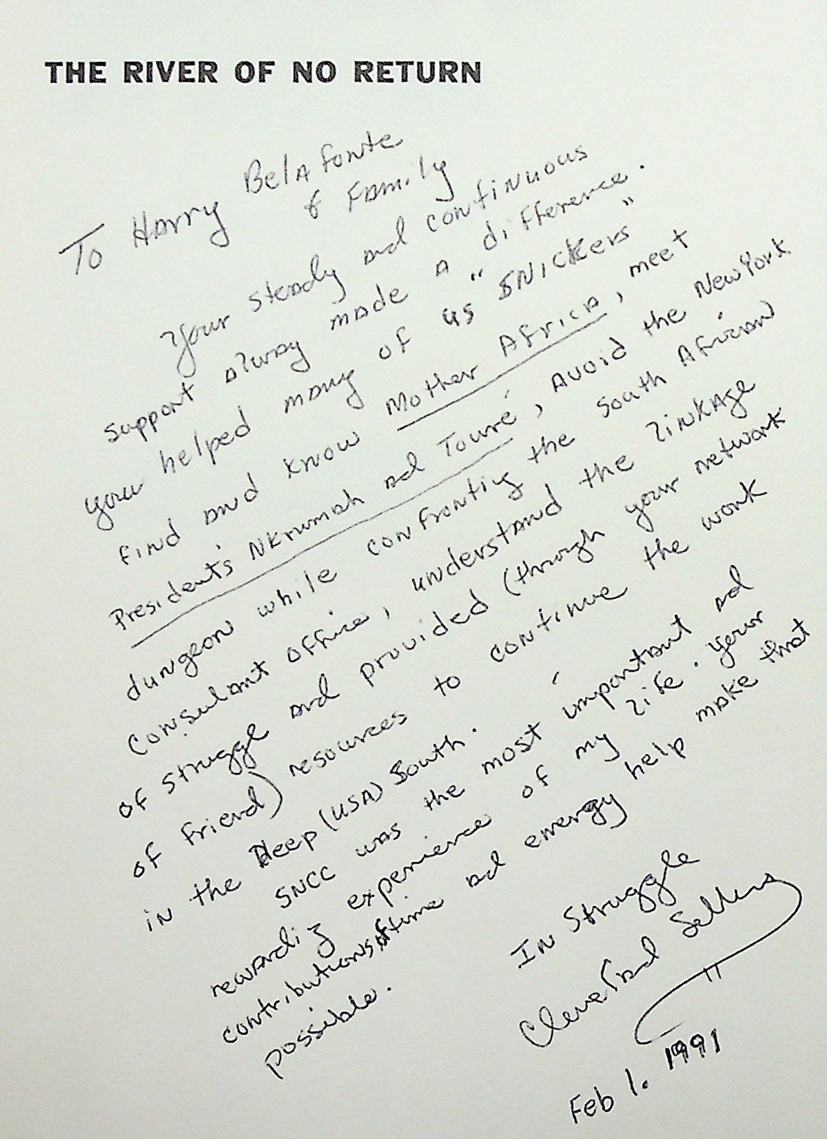 The River of No Return: The Autobiography of a Black Militant and the Life and Death of SNCC [Inscribed to Harry Belafonte]