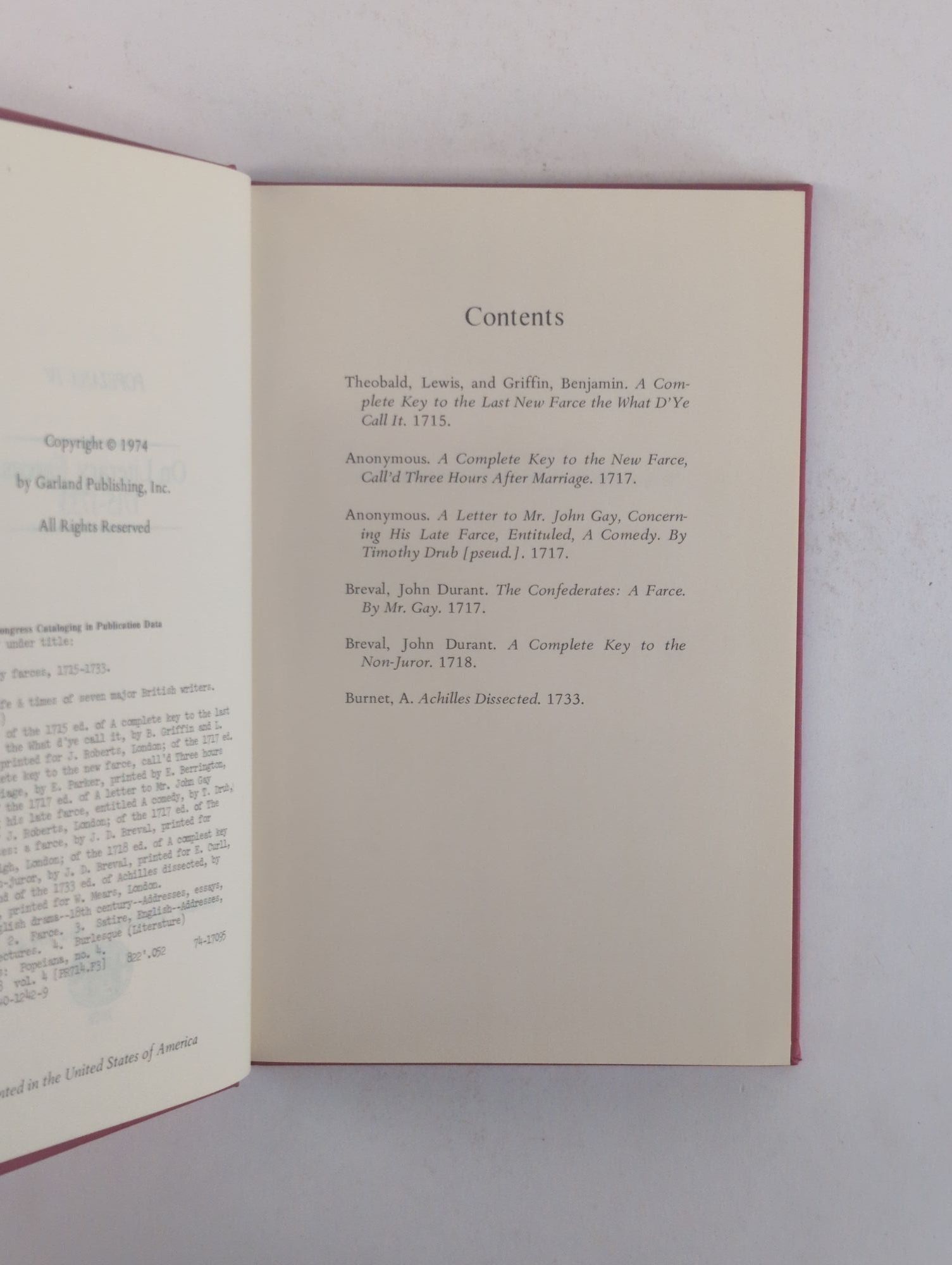 ON LITERARY FARCES 1715 - 1733 [From the Garland series THE LIFE & TIMES OF SEVEN MAJOR BRITISH WRITERS: POPEIANA IV]
