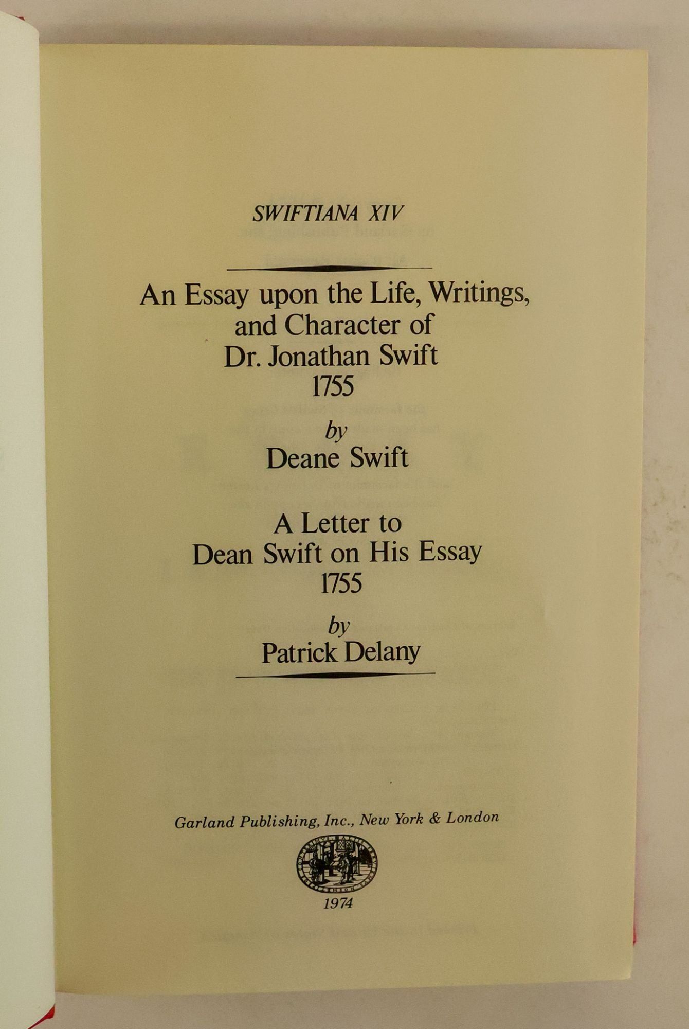 AN ESSAY UPON THE LIFE, WRITINGS, AND CHARACTER, OF DR. JONATHAN SWIFT; [Bound with] A LETTER TO DEAN SWIFT, ESQ; ON HIS ESSAY UPON THE LIFE, WRITINGS, AND CHARACTER OF DR. J. SWIFT [Two Facsimile Editions, Bound Together] [From the Garland series THE LIFE & TIMES OF SEVEN MAJOR BRITISH WRITERS: SWIFTIANA XIV]