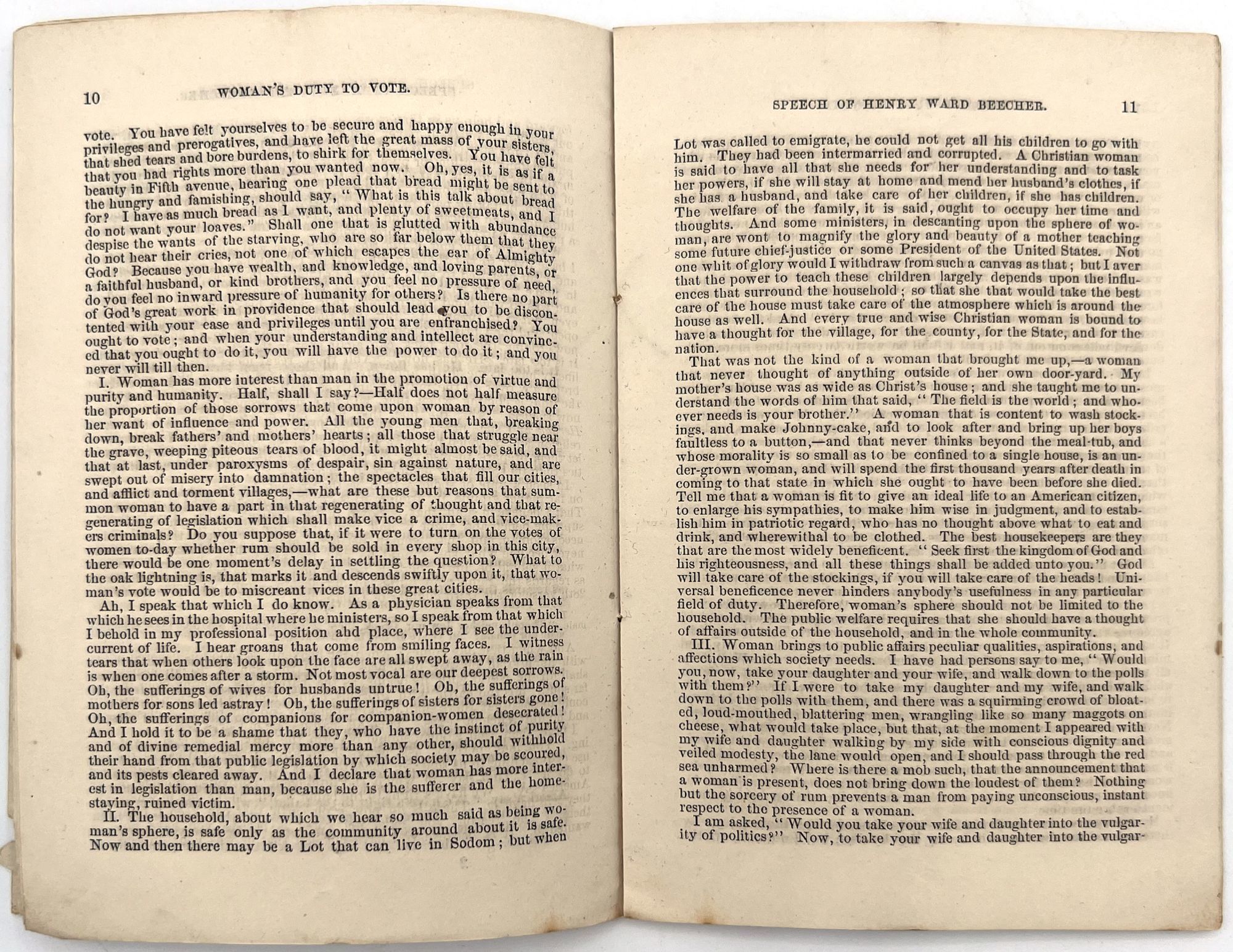 Woman's Duty to Vote. Speech by Henry Ward Beecher