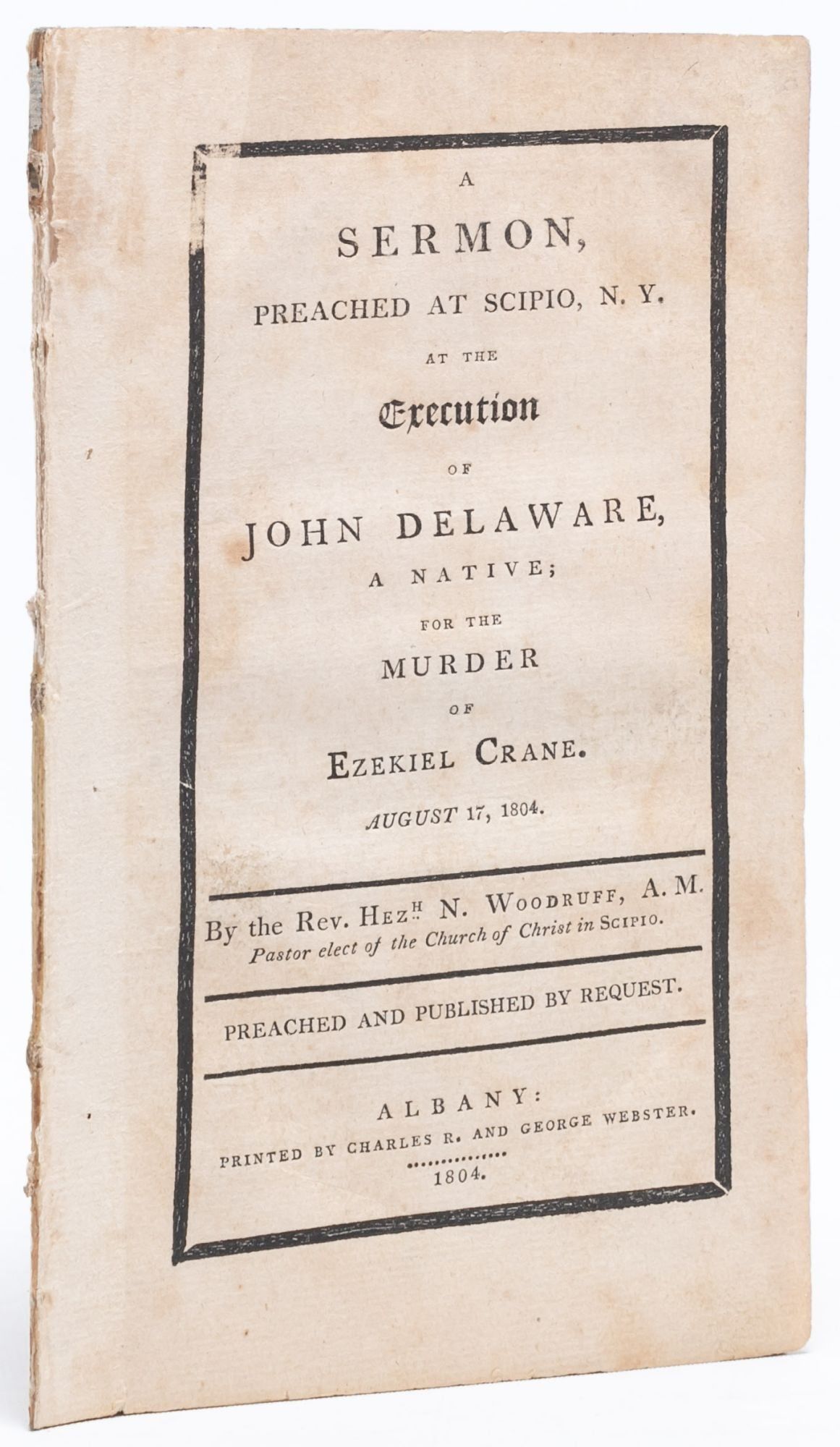 A Sermon Preached at Scipio, N.Y. at the Execution of John Delaware, a Native; for the Murder of Ezekiel Crane