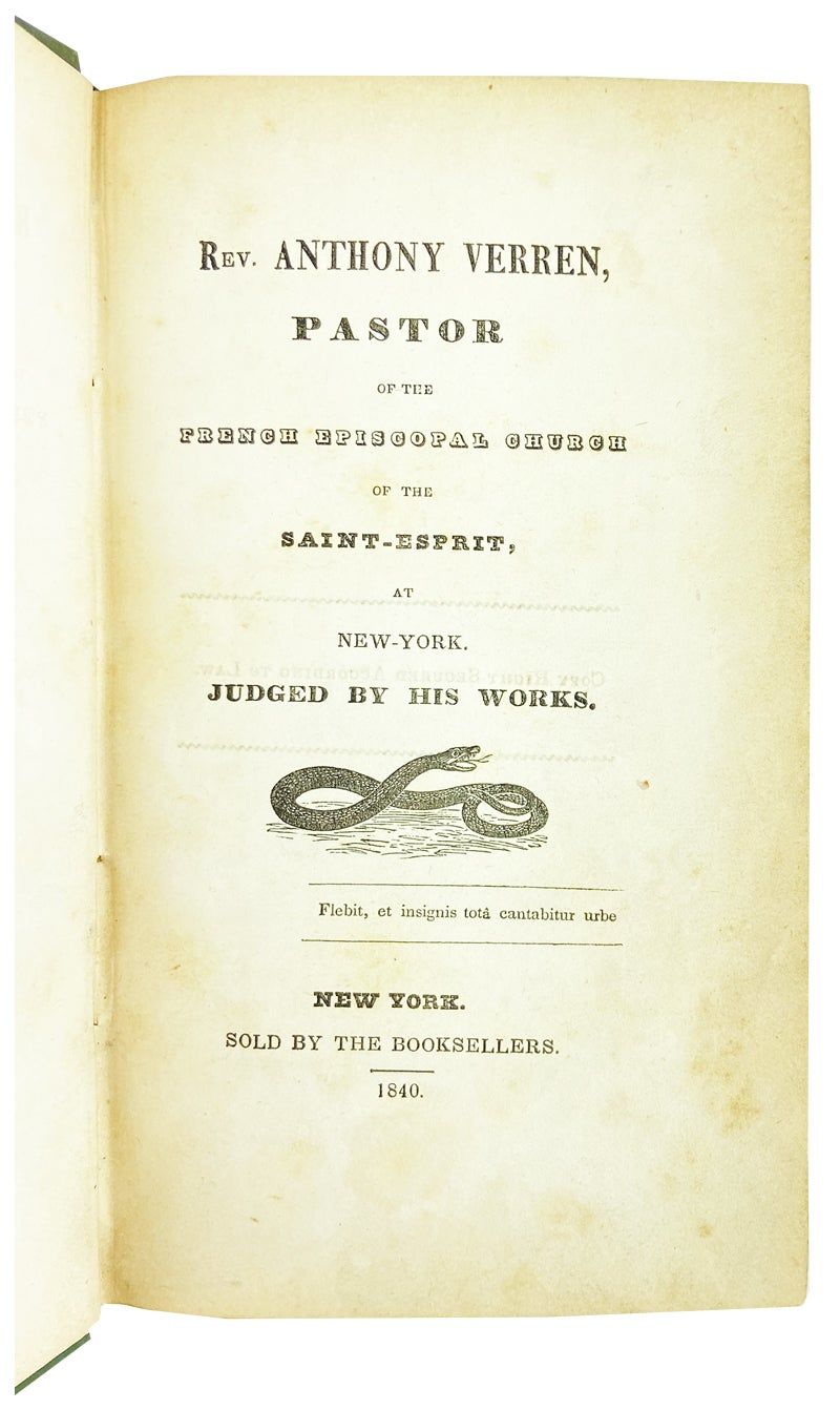 Rev. Anthony Verren, Pastor of the French Episcopal Church of the Saint-Esprit, at New-York. Judged by his Works
