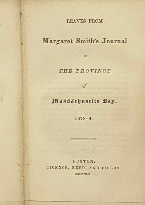 Leaves from Margaret Smith's Journal in the Province of Massachusetts Bay, 1678-9