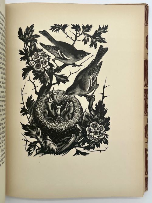 New York: The Macmillan Company, 1936. Hardcover. Very Good/Very Good. 141pp. Quarto [26.5cm]. Bound in burnt orange cloth, with title stamped in gilt on spine. Spine a bit rolled. Subtle fading to spine and extremities. Textblock and endsheets a bit age toned. In a clipped dust jacket, with a sun toned spine and a few open tears along the top edges of the rear panel. With 73 lovely flora and fauna wood engravings by Agnes Miller Parker.