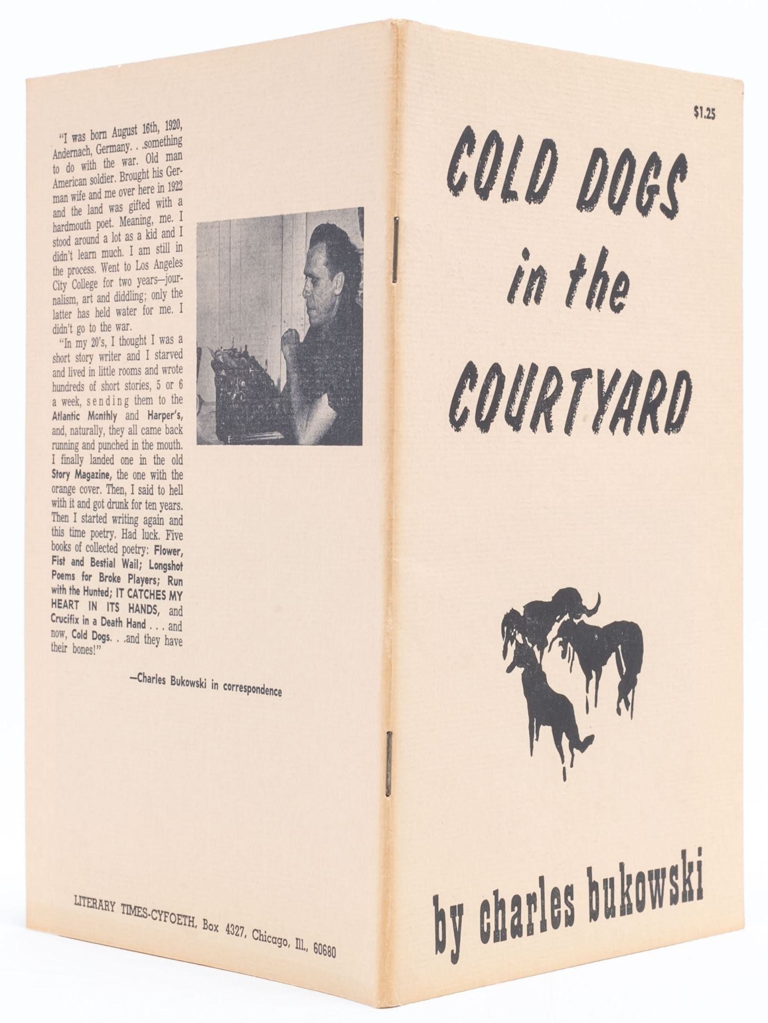 This chapbook compiles thirteen of Charles Bukowski's poems that had been previously rejected by literary magazines and book publishers. In his "Foreward" [sic], Bukowski writes, "The poems in this book...have been overlooked (or looked-over and shunned) by those people who, for reasons unknown to society, publish collections of poesy. This, I hope, will be the sixth gathering of my work since I began writing at the cobby age of 35, a sad long 9 years back, and these are the poems the editors didn't want for the earlier books...I went through the magazines looking for turned-away poems. I found 20 poems I wish I had never written, 20 I didn't give a damn about one way or the other. The others you will find in here."