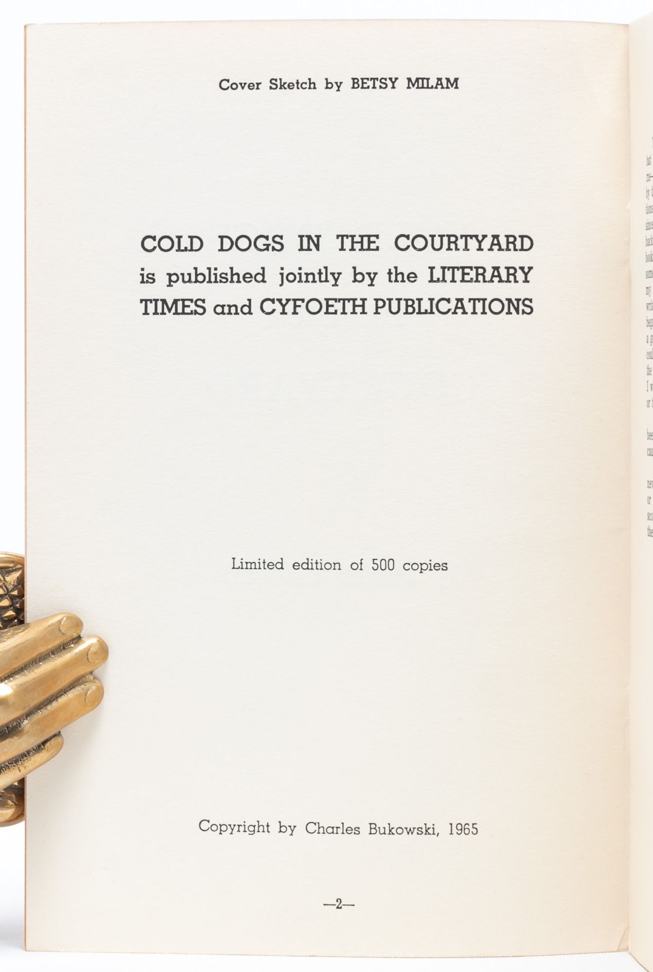 Chicago: Literary Times & Cyfoeth Press, 1965. First edition. Near Fine. One of five hundred copies of the first edition. Cover design by Betsy Milam. A Near Fine copy with just a bit of toning to the spine.