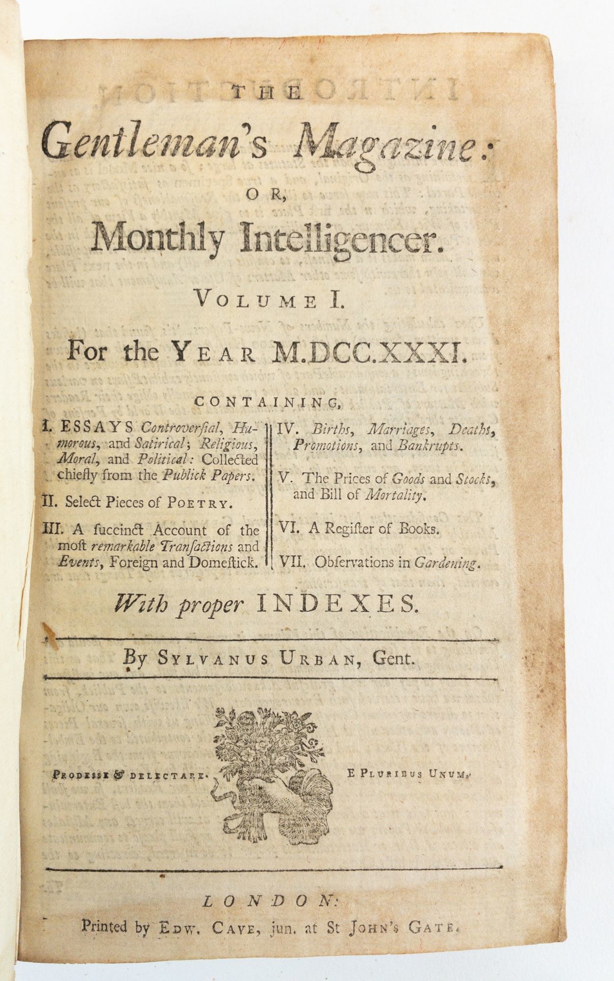 Please contact us with any additional questions. Shelved in Room D. The Gentleman’s Magazine was established in 1731 as a monthly publication by Edward Cave, a London printer and editor. It was the first publication to use the term “magazine” with reference to a publication (the term previously had been used only to refer to a storehouse of physical goods). In keeping with Cave’s vision for the magazine as a “storehouse” of knowledge for the informed gentleman, it featured articles on a wide array of subjects including contemporary politics, history, science, archaeology, geography, literature, music, and economics. The Gentleman’s Magazine continued in regular publication until 1907, with occasional issues printed until 1922. These issues cover the first forty-two years of the publication's history.