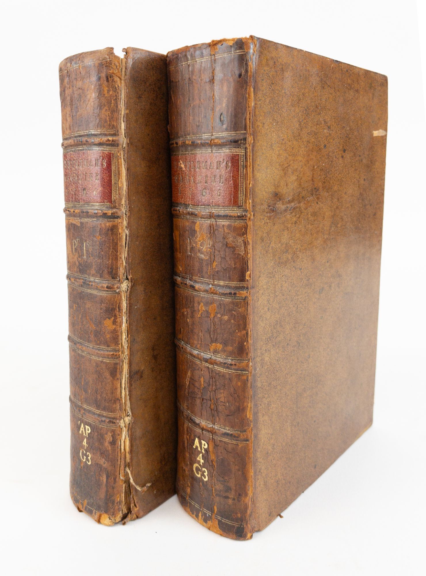 London: Printed by John Nichols for David Henry and sold by Eliz. Newbery, 1786. First Edition. Hardcover. Octavos, two volumes. In Good condition. Bound in full brown speckled calf with red leather labels bearing gilt text to spines. Splitting to both joints on Part 1, with both boards significantly shaken; lesser wear to joints of Part 2. Both volumes with light plus bumping and rubbing to edges and corners of boards; moderate bumping and chipping to heads and tails of spines. Part 2 lacking "View of the Harbour of the Island of Ponza"; other plates present as described in Charles St. Barbe. Ink library stamp and personal bookplate to front pastedown of each volume; Folger bookplate and deaccession stamp to rear pastedown of each volume. Shelved in Room D. 1389805. Special Collections.