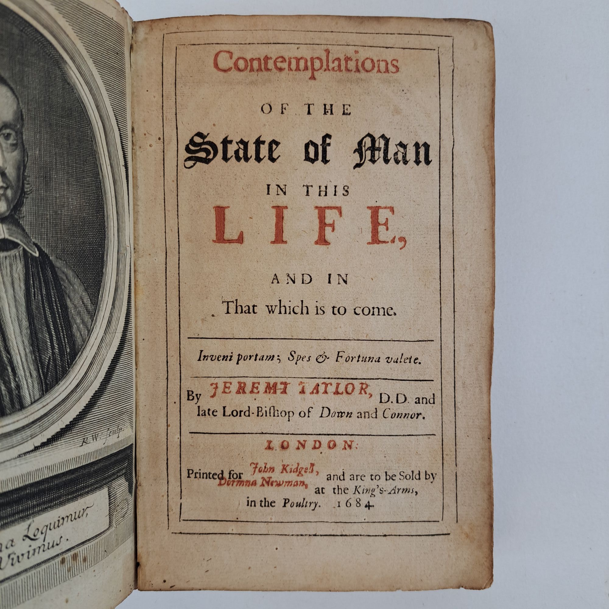 London: Printed for John Kidgell, and are to be Sold by Dormna Newman, 1684. Hardcover. Octavo, [12], 143 pages, [1], 177-303 pages, [1]. In Good minus condition. Bound in full contemporary tree calf, lacking spine label or title. Appears to have been rebacked. Boards show moderate plus wear to edges and leather on spine, with chipping to leather on front and back covers. End paper split at front gutter. Text block has moderate age toning to edges, and minimal age toning to pages throughout interiorly. Frontispiece portrait of Taylor. Text complete despite pagination. Comports with ESTC collation.