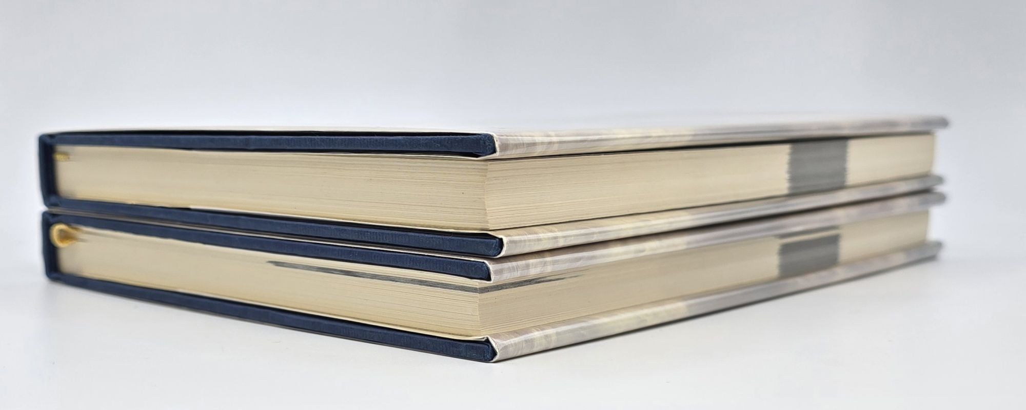 Blue cloth boards with gilt lettering to spines; gold ribbon bookmarks. Mild shelf wear to boards, including bumping to head, tail, and corners and scuffing to boards; light age-toning to text blocks, interiors clean.