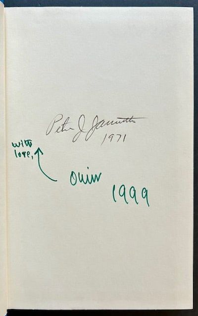 Berkeley. CA: University of California Press, 1970. Cloth. Near Fine/Near Fine. Mrs. Audrey Besterman. INSCRIBED BY OLIVER SACKS TO FELLOW NEUROSURGEON PETER J. JANNETTA on the front free endpaper. A lovely copy to boot of the 1970 stated 1st printing of Oliver Sacks's 1st published book, this scholarly examination of the evoluton of migraines. Clean and Near Fine (with just the faintest touch of light soiling along the top and fore-edges) in a crisp, price-intact ($8.50), Near Fine to Fine dustjacket. All but pristine in its original iteration. The author's first literary output in what would of course evolve into a remarkable career in both the fields of neurology and the history of science. Truly a collector's copy.