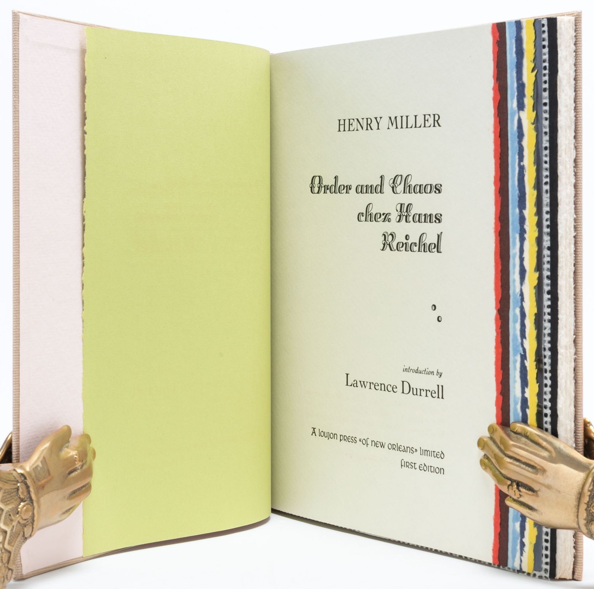 "Written in 1937-38 in Paris, this book was penned without carbon & gifted as a long intimate book letter to the painter Hans Reichel who died 1958: now a Loujon Press 1524-copy first edition" (from the dust jacket). The work is here presented with an introduction by Lawrence Durrell and illustrations reproduced from Reichel's own work.