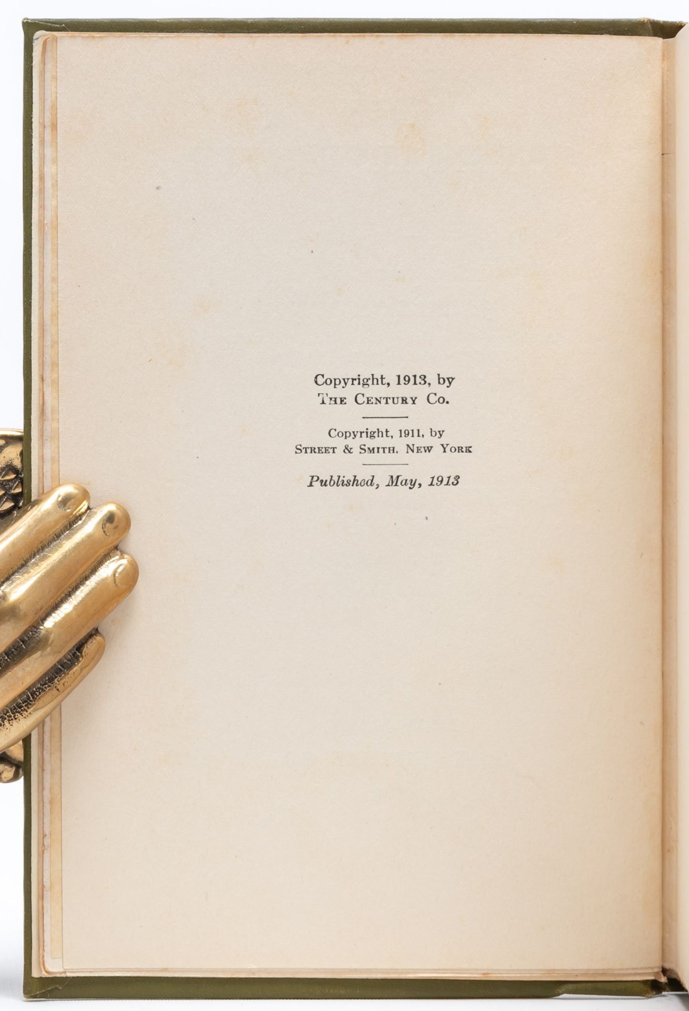 New York: Century Co, 1913. First edition. Near Fine/Near Fine. First edition in the scarce dust jacket. [4], 169, [1, ads] pp. Complete with the frontispiece by Gordon Grant. Publisher's olive green cloth titled in yellow and stamped in black. Slight foxing, mostly to first and last few leaves. In the publisher's dust jacket, with just a bit of chipping at head and tail of spine and at corners. A Near Fine copy, overall bright and fresh, in like dust jacket.