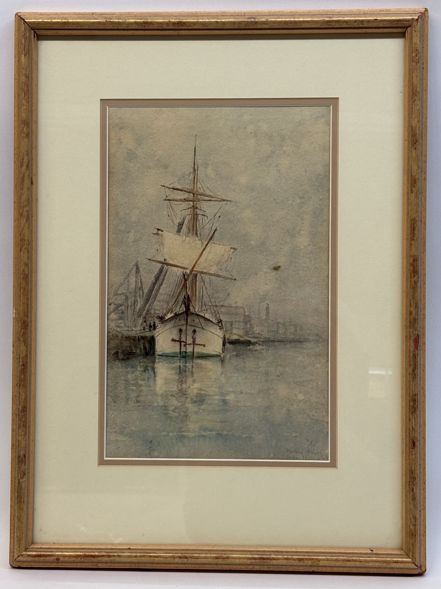 United Kingdom, ca. 19th century. Watercolor on paper. In Very Good condition in a Very Good gilt and wood frame. Exposed painting measures w. 8 in by h. 12.5 in. Frame measures w. 14.7 in. by h. 19.75 in. Minimal scuffing and wear to frame. Minimal agetoning and fading to paper. 1/4 inch stain to paper on sky section halfway down right side. Signed and titled in lower right corner, signature illegible. Item no. P073. EH consignment. Shelved Rockville. 1390118. Arts & Antiques.