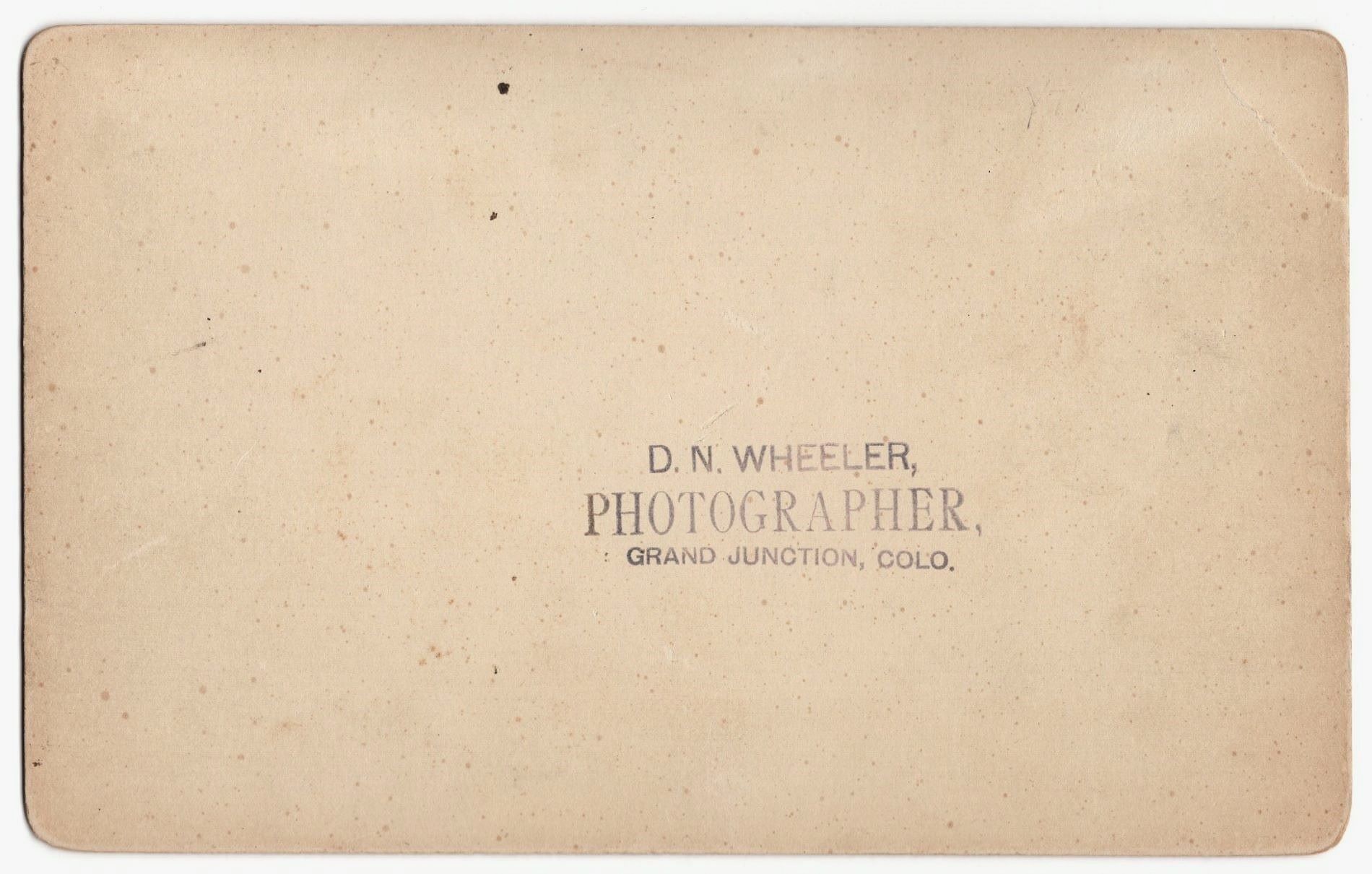 Originally from Pennsylvania, D. N. Wheeler (1841-1909) was a civil war veteran (Union) and then became a photographer after he headed west and settled in Grand Junction, CO, where he learned the trade from Thomas E. Barnhouse.