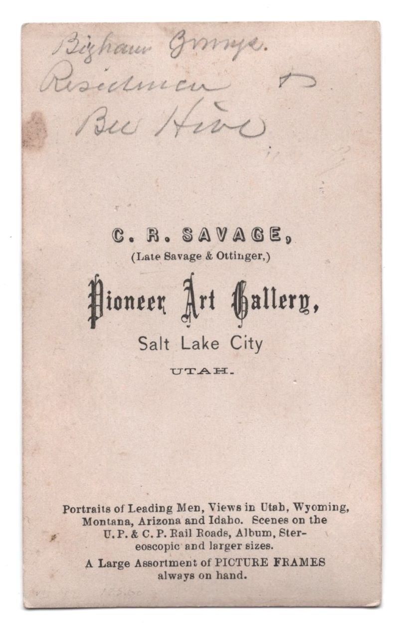- Salt Lake City, UT: C. R. Savage, Pioneer Art Gallery, 1870