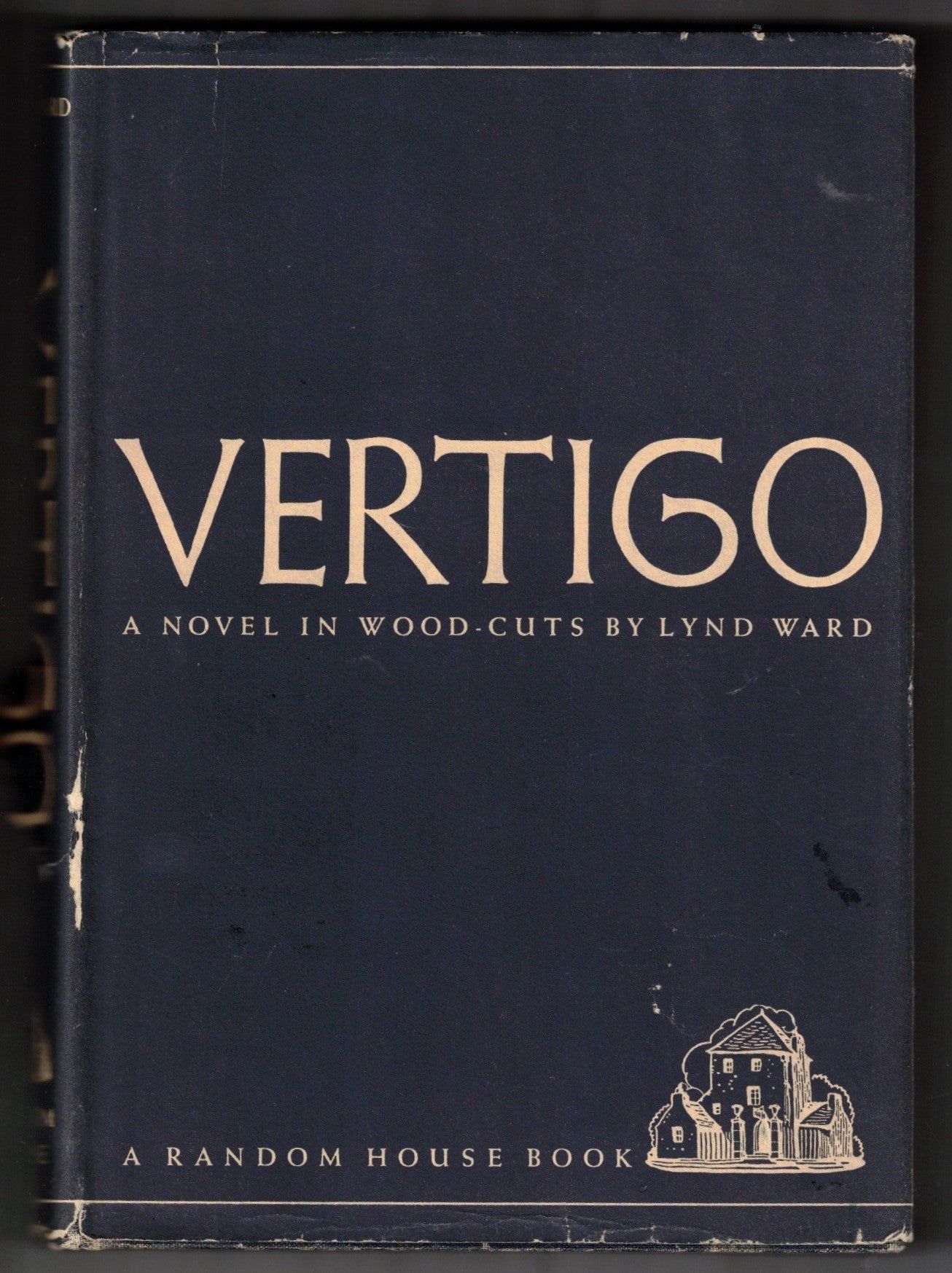 New York: Random House, 1937. First edition. Hardcover. Very Good/Very Good. Lynd Ward. [490 pp. 230 wood engravings.] Octavo [21.5 cm]; full dark blue cloth with spiral and star illustrations. Extremities moderately rubbed. Some light toning around edges of the pastedowns and flyleaves (as is commonly seen in this work). Contemporary owner's name and date neatly written in black ink on the front free endpaper. A Very Good copy; clean, square, and tightly bound. With the scarce dust jacket. Surface of the jacket's spine chipped, with a small loss obscuring just a little of the title. Edges a bit chipped and rubbed. 3/4" closed tear to top edge of rear panel. Considered one of Lynd Ward's finest works, "Vertigo" is the sixth and final of his “wordless novels,” and is told in 230 beautiful and striking woodcut images. The narrative takes place during the Great Depression and explores themes of greed, love, despair, and death, through the progression of three characters: a young woman, a young man, and an ailing capitalist. Ward produced his six wordless novels (proto-“graphic novels”) between 1929 and 1937, and although he continued to be an in-demand illustrator for the rest of his life, these early works show him at the height of his creative powers. Dance 10.