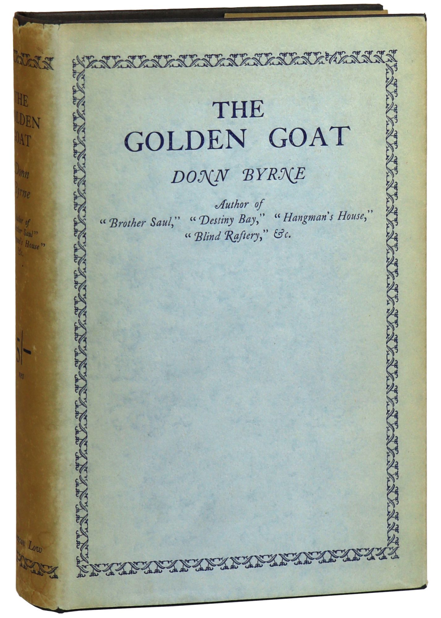 London: Sampson Low, Marston & Co., Ltd, 1930. Very Good +/Very Good +. London, Sampson Low, Marston & Co., Ltd., [1930]. First Edition. Octavo (19 cm); 156pp. Black cloth bound boards with blind stamping in pale blue publisher's dust jacket. Jacket spine sunned and margins toned with minor bumping, creasing, and rubbing to margins. Board corners and spine ends lightly bumped, page edges toned, with endsheets foxed and offset from jacket. Pages relatively clean. A Very Good or better copy in like dust jacket.