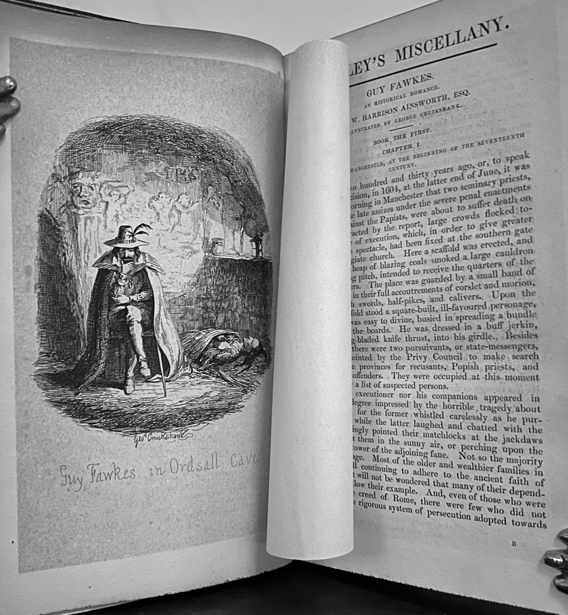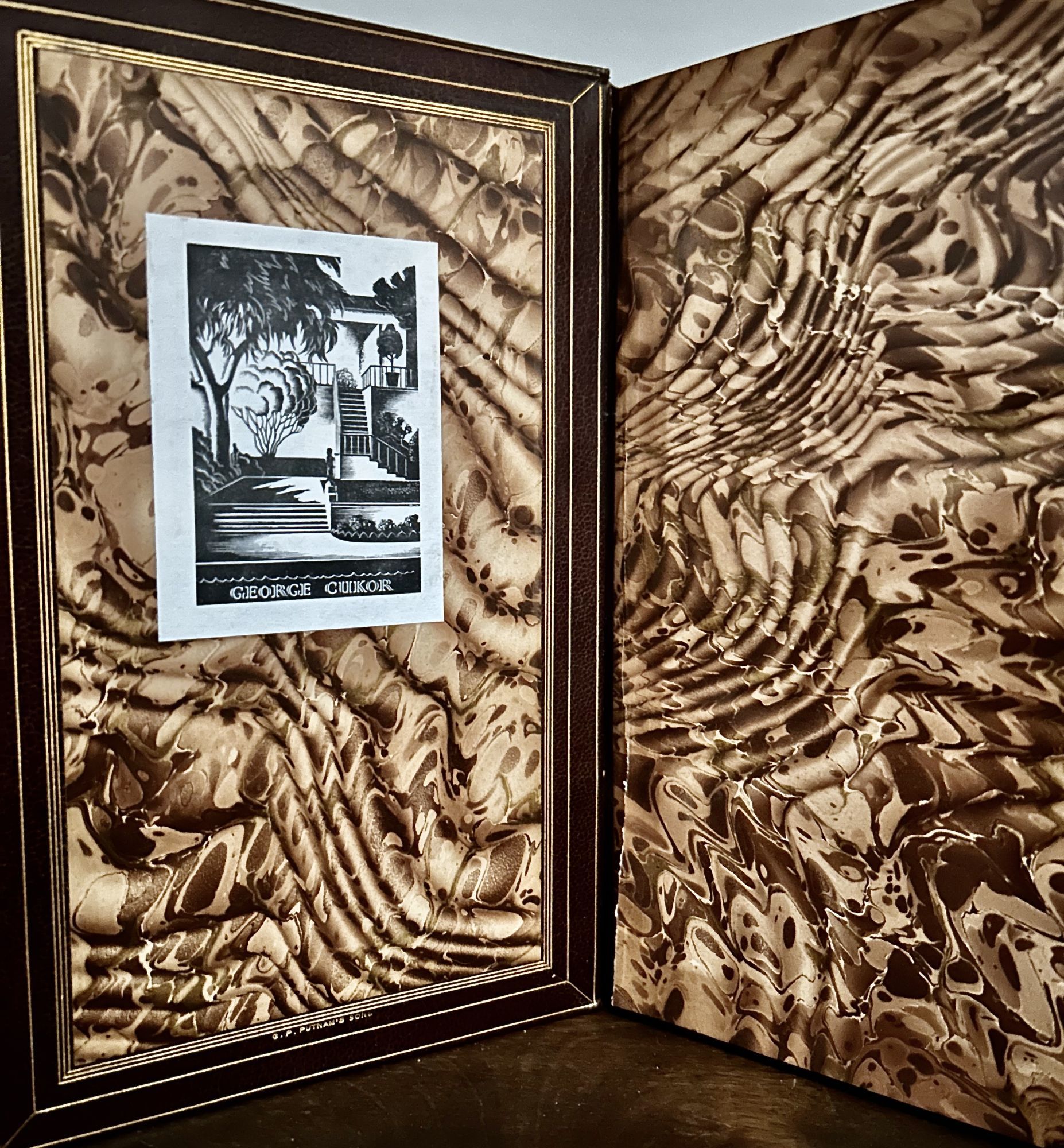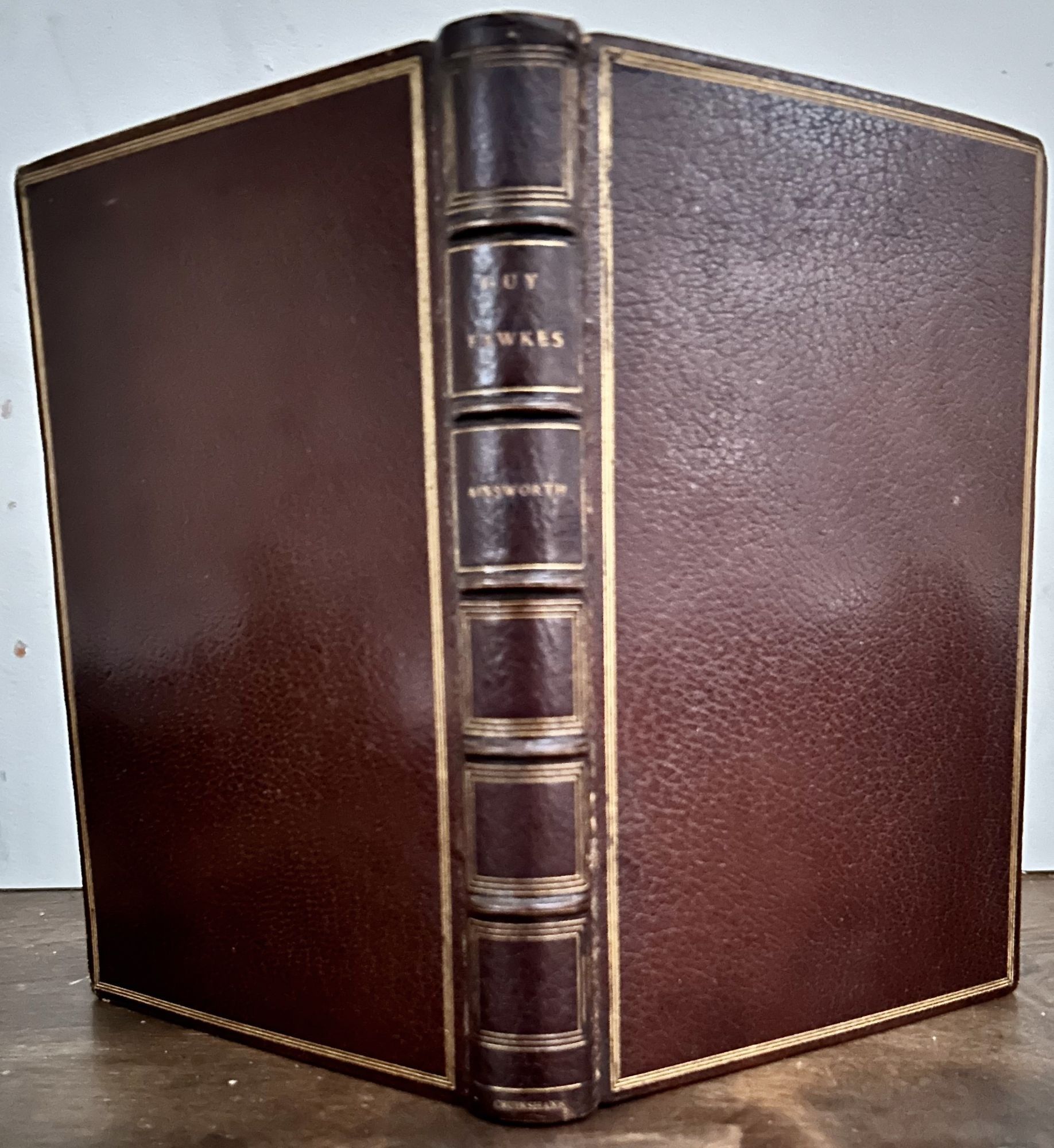 London: Bentley's Miscellany, 1840. leather_bound. Full brown morocco. Teg. Near fine. 540 pages. 22 x 14 cm. Full page illustrations printed recto only by George Cruikshank. Illustrated book plate of George Cukar, who was an American film director and producer (My Fair Lady). Elegantly bound by G.P. Putnam's Sons. Interior contents clean and fresh. Raised bands, spine panels lettered in gilt, triple gilt cover border panels, inner dentelles, marbled endpapers. OCLC: 1015375537.