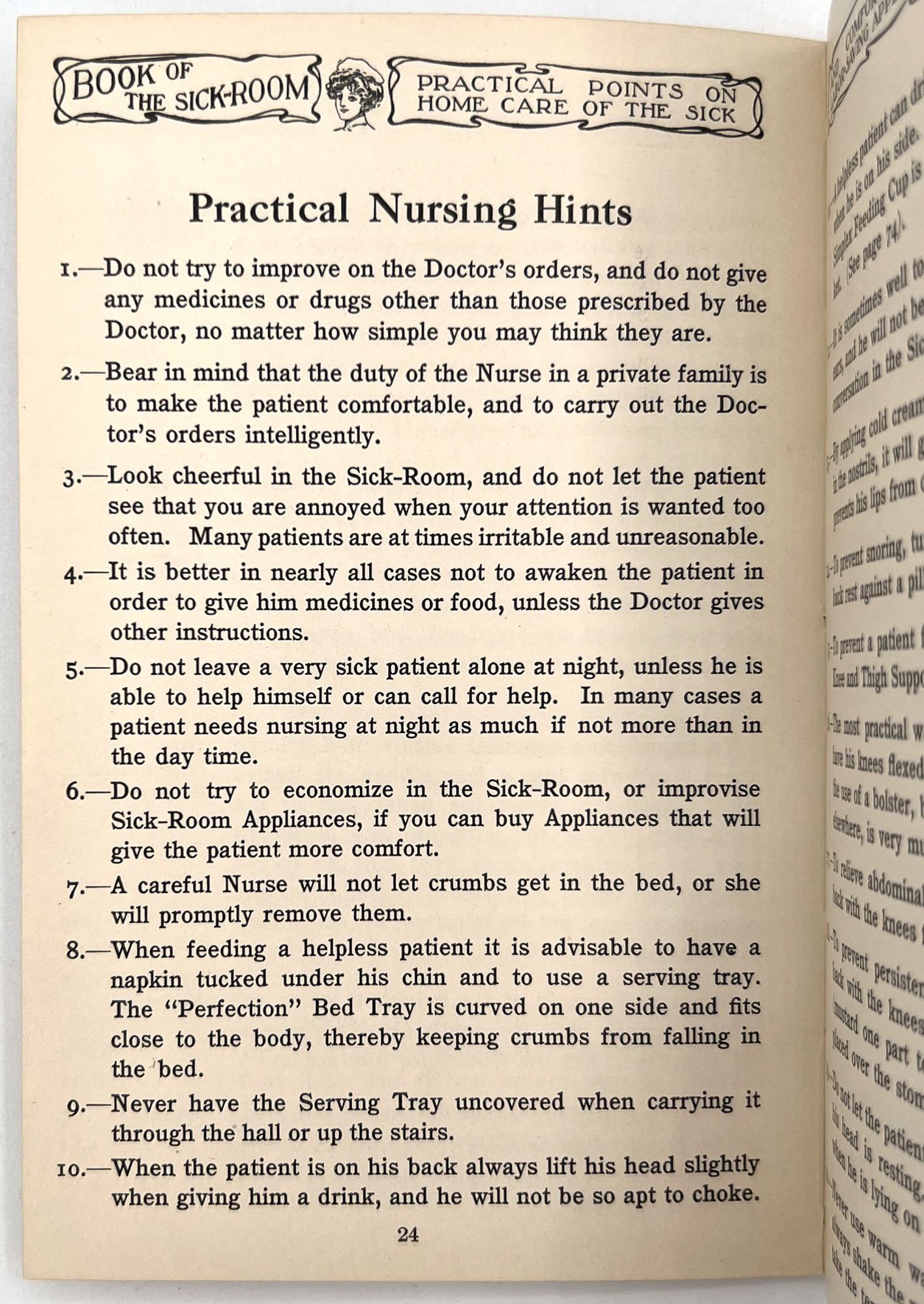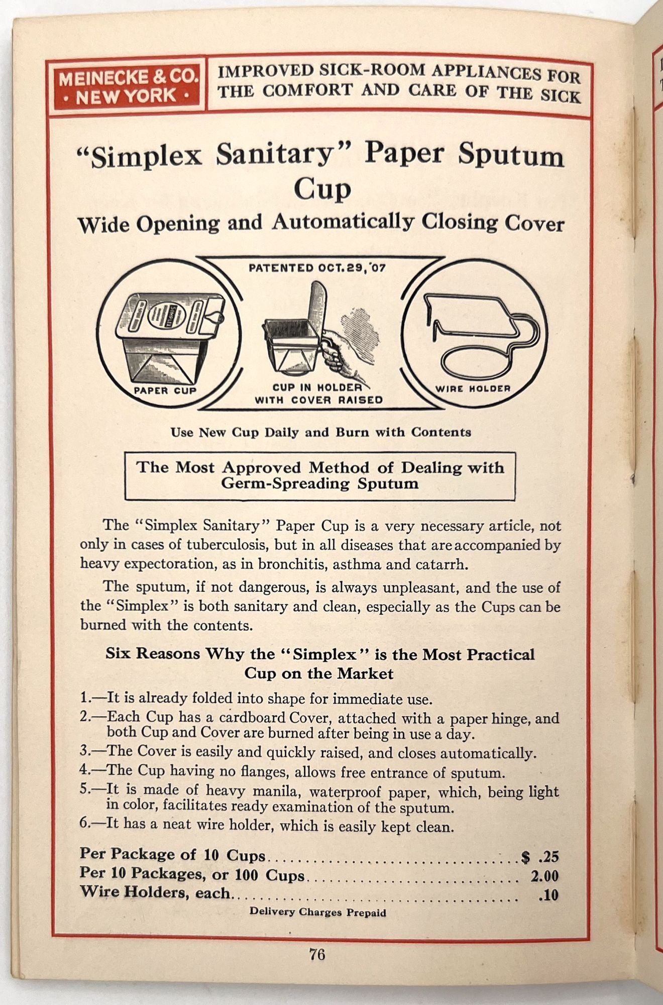 Meinecke Book of the Sick Room" -- Home Nursing on the Eve of WWI with section of Sick Room Supply Catalog