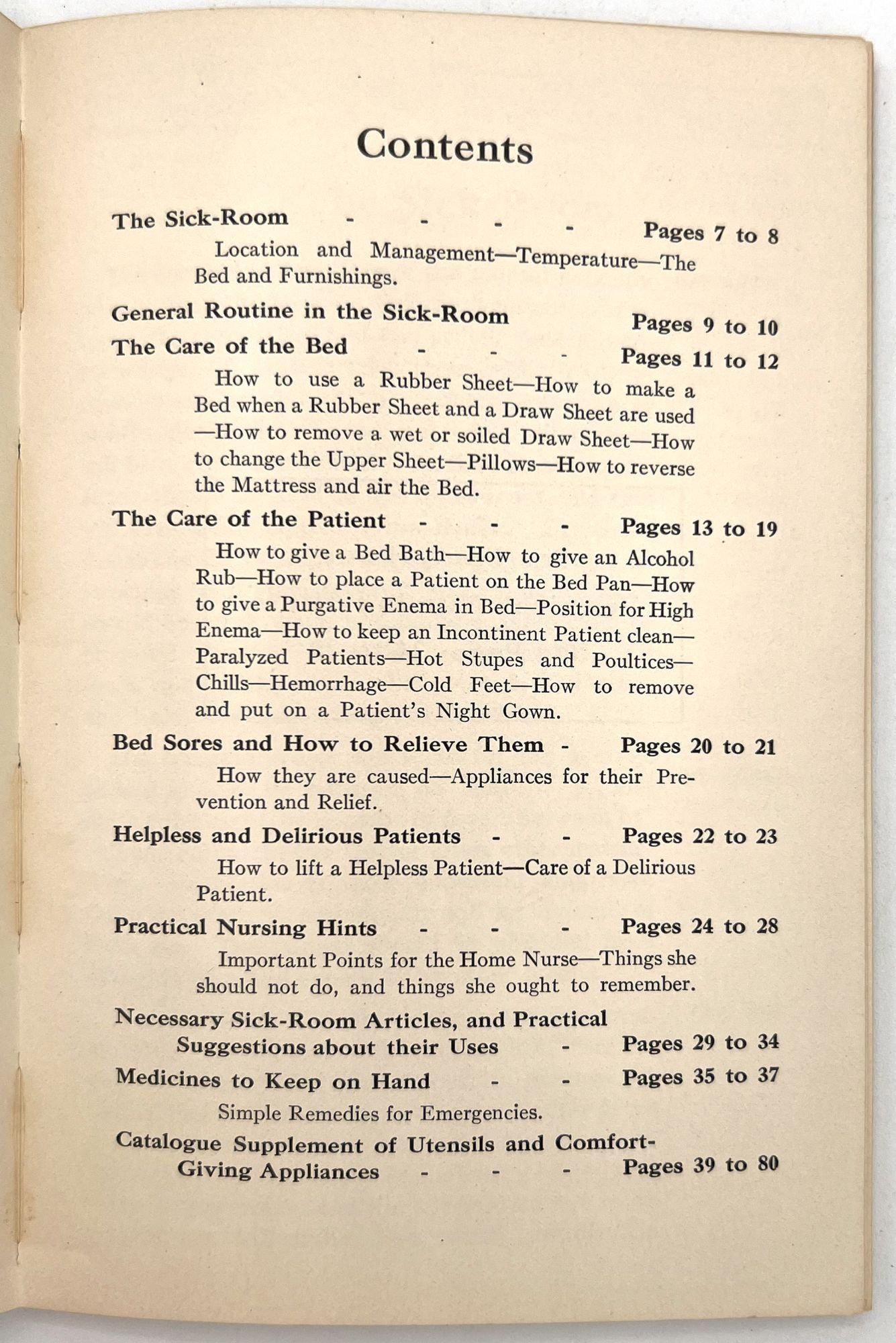 Pages 39-80 are a sick room supply catalog. Note the consistent use of the "she/her" pronouns; nursing at this time was very much woman's work, and was becoming more and more professionalized as such.