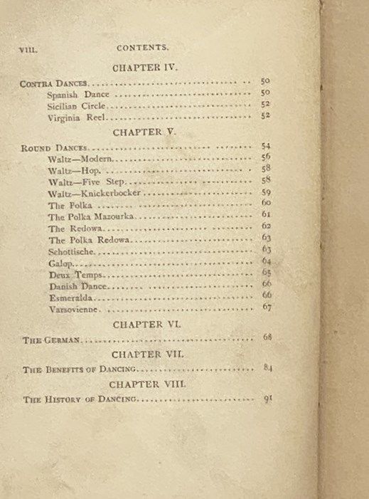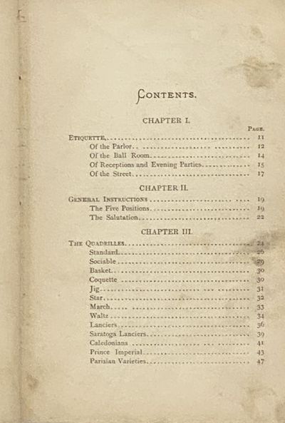 New York: Sause's Dancing Academy, 1880. Second Edition. Hard Cover. Fair/No Jacket. 1880 second edition, adding a new preface by the author. Lacks title/copyright page, boards rubbed with some loss along edges, stains to boards and a few pages, ink names on rear endpaper. viii, [9]-120 pp. Blue cloth, gilt titles, black stamped decorations. A scarce study of dance by the founder of a dancing academy in New York City, including comments on etiquette and general instruction, as well as guidance for particular types of dances. Originally published in 1879, the preface references 'urgent demand for a second edition.