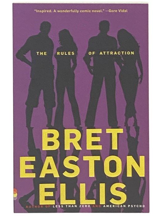 New York: Vintage Contemporaries, 1991. Reprint. Trade Paperback. Fine. 5x0x7. Reprint. Brand new from publisher. 1991 Trade Paperback. 283 pp. Note: FIRST PAGE OF TEXT STARTS MID-SENTENCE, ON PAGE 13. THIS IS INTENTIONAL, AND NOT A PUBLISHER DEFECT. "Set at a small, affluent liberal-arts college in New England at the height of the Reagan 80s, The Rules of Attraction is a startlingly funny, kaleidoscopic novel about three students with no plans for the future--or even the present--who become entangled in a curious romantic triangle. Bret Easton Ellis trains his incisive gaze on the kids at self-consciously bohemian Camden College and treats their sexual posturings and agonies with a mixture of acrid hilarity and compassion while exposing the moral vacuum at the center of their lives. Lauren changes boyfriends every time she changes majors and still pines for Victor who split for Europe months ago and she might or might not be writing anonymous love letter to ambivalent, hard-drinking Sean, a hopeless romantic who only has eyes for Lauren, even if he ends up in bed with half the campus, and Paul, Lauren's ex, forthrightly bisexual and whose passion masks a shrewd pragmatism. They waste time getting wasted, race from Thirsty Thursday Happy Hours to Dressed To Get Screwed parties to drinks at The Edge of the World or The Graveyard. The Rules of Attraction is a poignant, hilarious take on the death of romance.