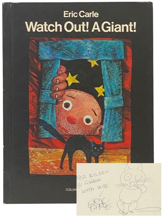 Cleveland / New York: Collins World, 1978. First Edition. Large Hardcover. Very Good/No Jacket - Pictorial Cover. 20x20x20. Signed by author. Signed by illustrator. 1978 first edition (not the common 2002 reissue). Inscribed and signed by author, with a cat doodle, on half-title page ('For Eileen & Sarah with love, Eric Carle'). Minor wear to corners, moveable flaps all present and functional. Unpaginated. "Two children go out to play and accidentally find themselves in the garden of a ferocious giant who catches them and plans to eat them for his dinner. When they try to escape (through trapdoors and tunnels made possible by the die-cut pages) they find themselves in even more serious danger! Beautiful pictures, easy words, and lots of action make this a delight for any child just learning to read. Ingeniously die-cut pages add to the fun of a delicious scary (but not too frightening) story with a cozily happy ending. Eric Carle says he created this book as an introduction to the world of fairy tales for the very young. Feeling that most of the classic tales are intended for somewhat older readers, he decided to write a story that would contain the elements of these stories - the excitement and humor, the straightforward acceptance of fantasy and magic - in a picturebook format for the very youngest children. His pictures for this book are cut and layered collages of specially prepared papers, overpainted with ink, crayon and tempera.
