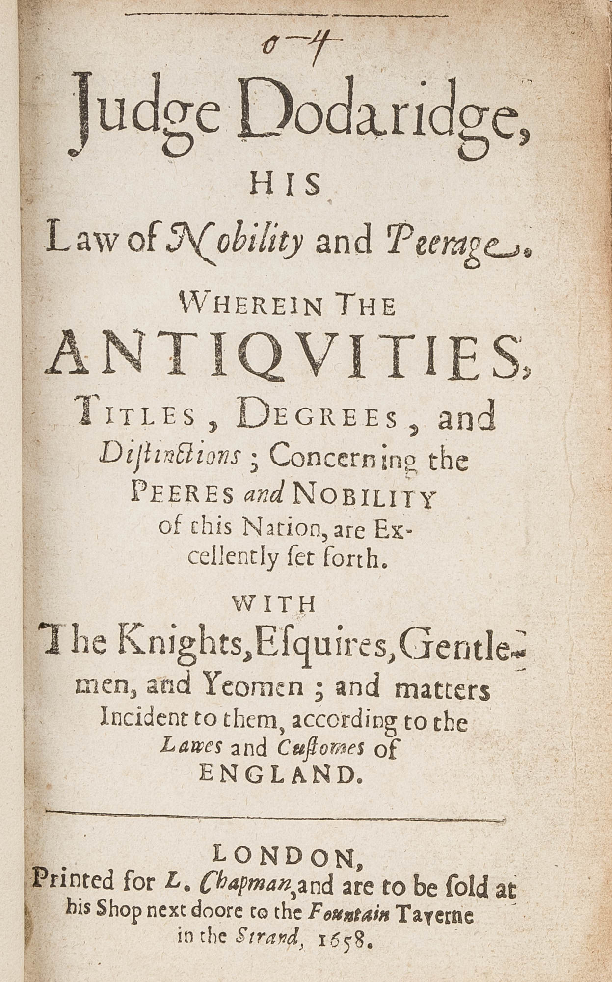 Judge Dodaridge, His Law of Nobility and Peerage, Wherein the..