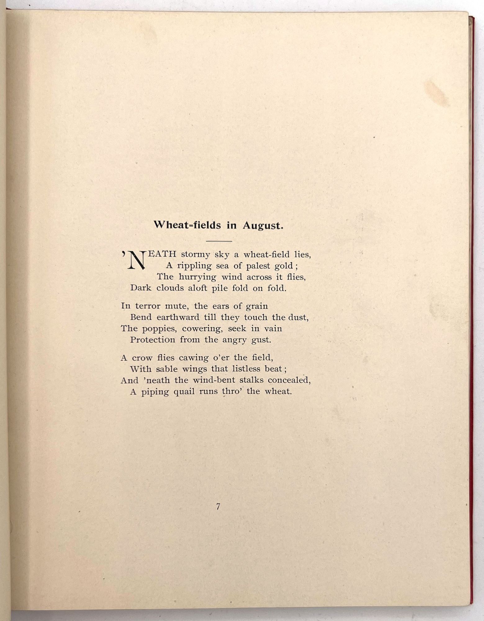 Square 8vo (7.5" by 6"), pp. 105, [5], in original red cloth binding stamped in gold and blind on upper cover, all edges gilt, patterned end papers.
