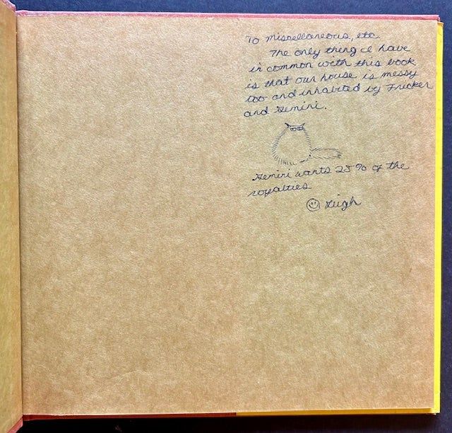 New York: Atheneum, 1975. Pictorial cloth. Very Good +/Very Good. Leigh Grant. WONDERFULLY INSCRIBED BY THE ILLUSTRATOR LEIGH GRANT --AND WITH AN ORIGINAL DRAWING OF "GEMINI"-- on the front free endpaper. A solid copy to boot of the 1975 stated 1st edition. Tight and VG+ to Near Fine in a crisp, price-intact, VG dustjacket, with just a bit of light staining along the foot of the spine. Oblong octavo, nicely illustrated throughout by Leigh Grant.