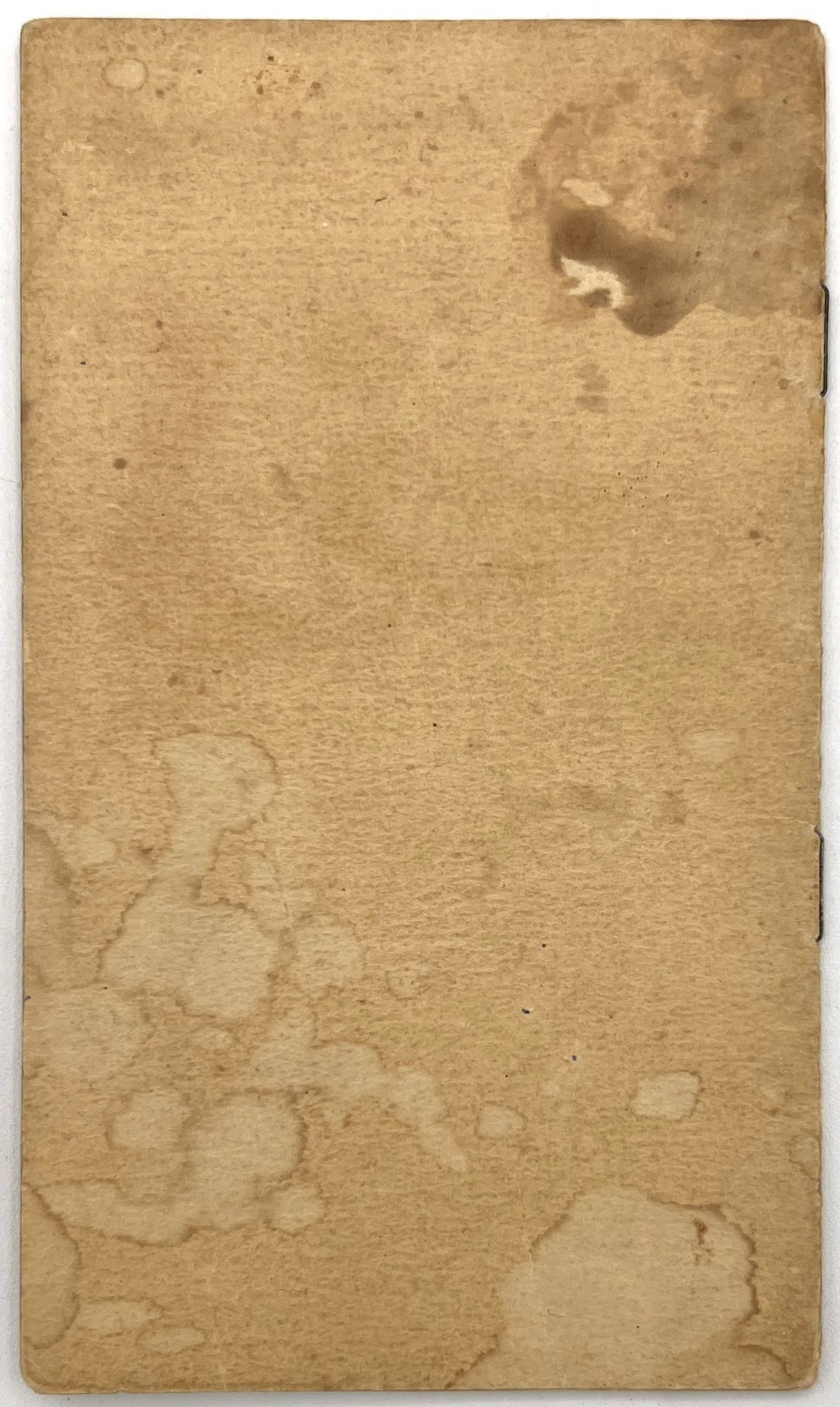 12mo (6" by 3.25"), pp. 16, stapled in original illustrated wrappers. Not located in OCLC (Feb. 2022).