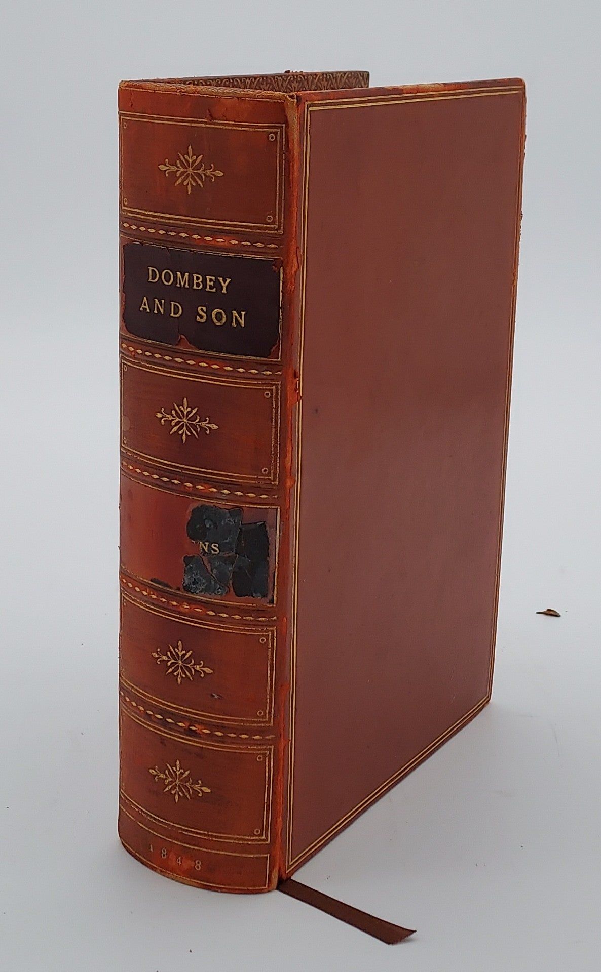 London: Bradbury & Evans, 1848. First edition in book form, early issue. Leather Bound. Very Good. H. K. Browne. 624pp. Octavo [21.5 cm] Bound in a contemporary Bayntun binding of full brown leather, with gilt stamped ornamental designs on the spine, the publication date at the foot of the spine, and double gilt-ruled borders on the covers. All edges gilt. Turn-ins gilt. Two brown silk ribbon page-markers. With the frontispiece and engraved half title and 38 plates by Halbot Knight Browne ("Phiz"). Extra-illustrated with twelve illustrated plates depicting the leading characters. No Errata. Second spine label mostly perished. Light rubbing to the extremities. Barely visible numerical notation on the front free endpaper. Faint contemporary ownership marking at the head of the title page. Paper repairs to pp. 113/14 and repair to fore-edge margin of p. 127/28. The following was noted during collation: "Captain Cuttle consoles his Friend" is facing p. 86 rather than p. 87. "Poor Paul's Friend" is facing p. 178 rather than p. 179. "Solemn Reference is made to Mr. Bunsby" is facing p. 239 rather than p. 238. "On Arrival" faces p. 564, not p. 565. Dark plate at p. 547 (the first published example of a dark plate). Smith 8. Eckel, p. 74-76. Collins (extract from the third volume of The New Cambridge Bibliography of English Literature), pp. 798/99.