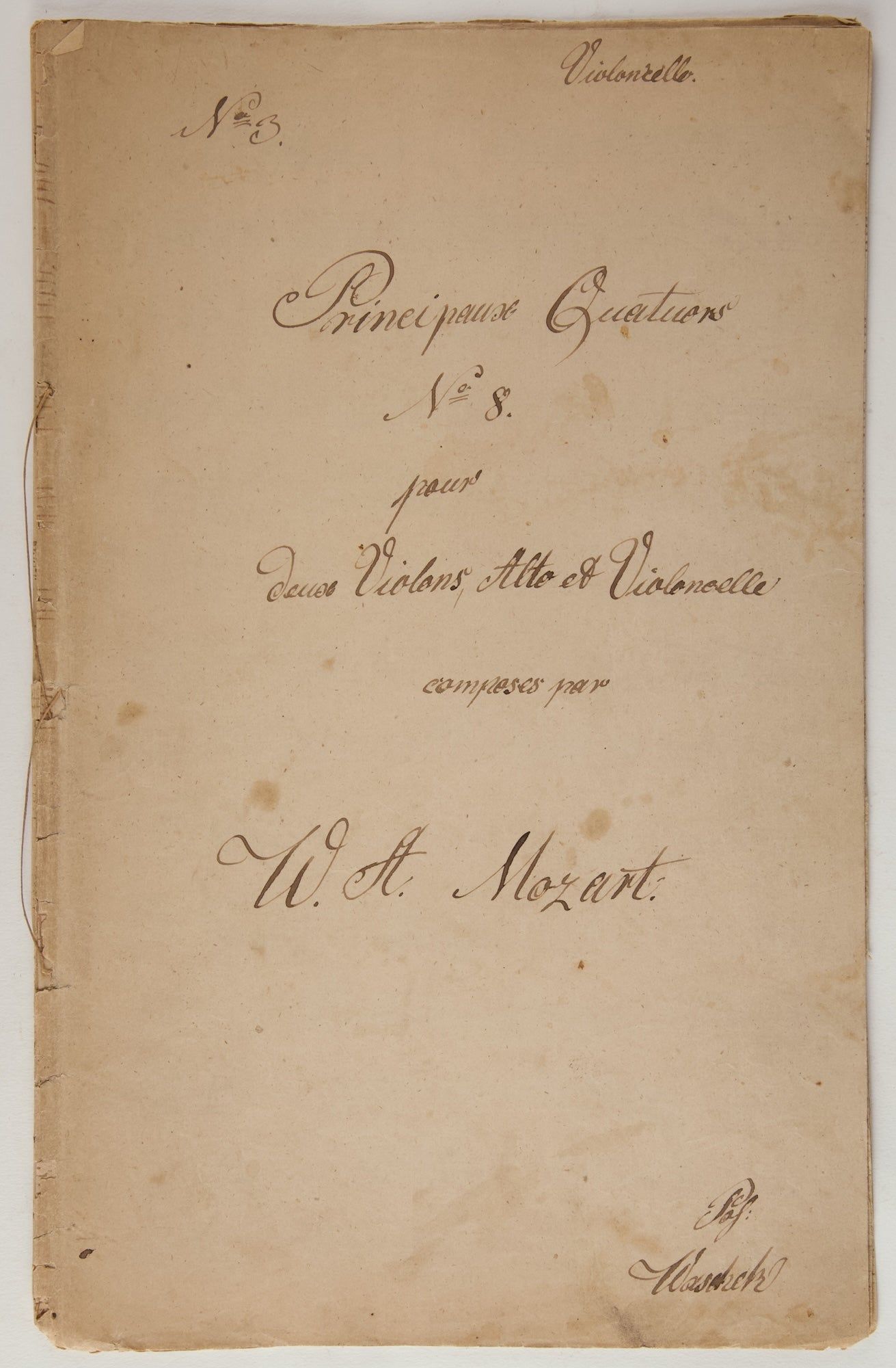 No. 3 Principaux Quatuors No. 8 pour deux Violons, Alto, et Violoncelle ... [the "Prussian Quartets"]. [KV 590]. [Copyist manuscript set of parts]