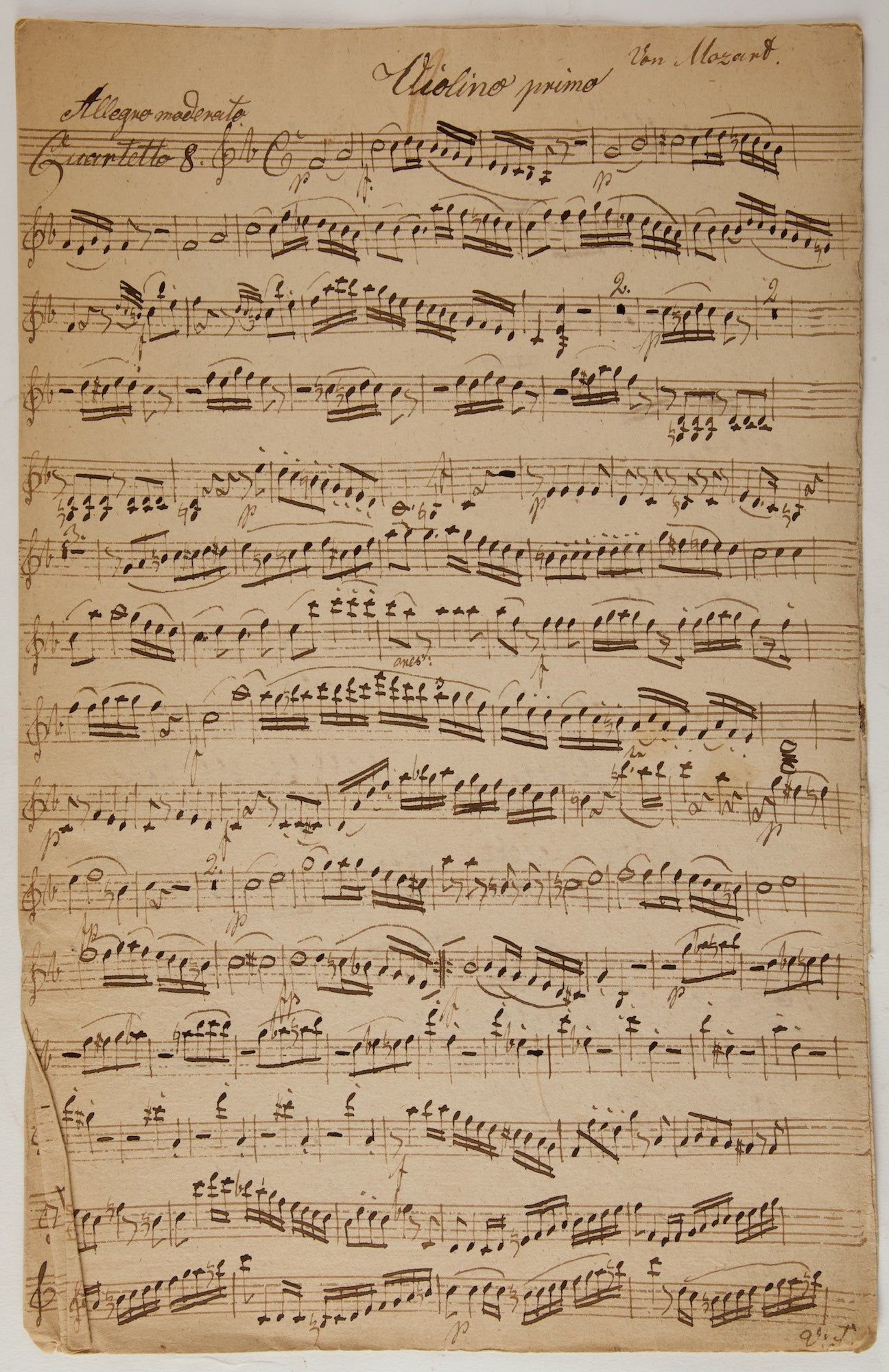Some minor wear, browning, staining, soiling, and showthrough; small tears to inner margin of title. The third of Mozart's "Prussian Quartets" (KV 575, 589, 590).