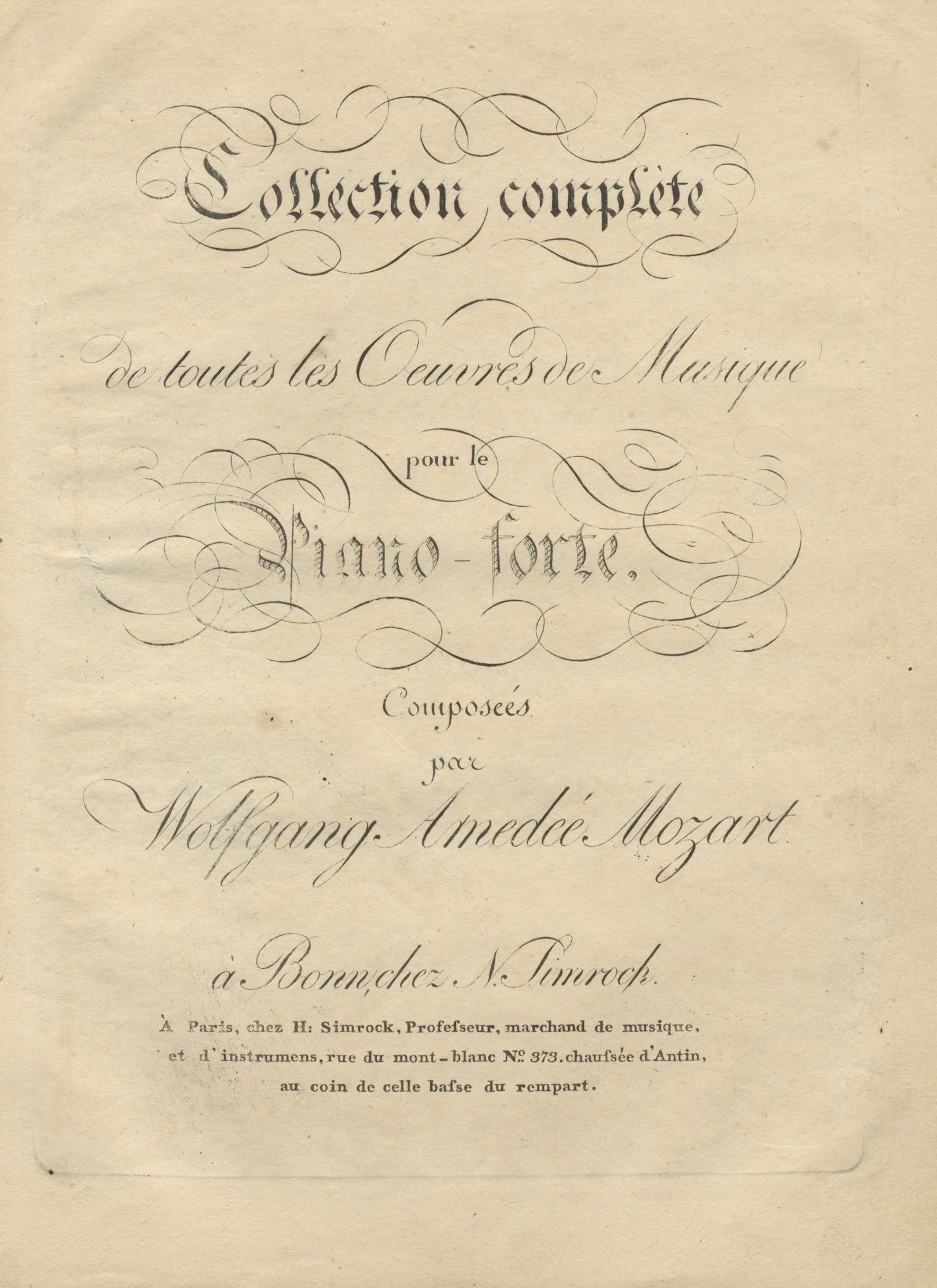 Series title: Collection complète de toutes les Oeuvres de Musique pour le Piano-forte, ... à Bonn, chez N. Simrock. À Paris chez H. Simrock, Professeur, marchand de musique, et d'instrumens, rue du mont-blanc No.. 373. chaussée d'Antin, au coin de celle basse de rempart.