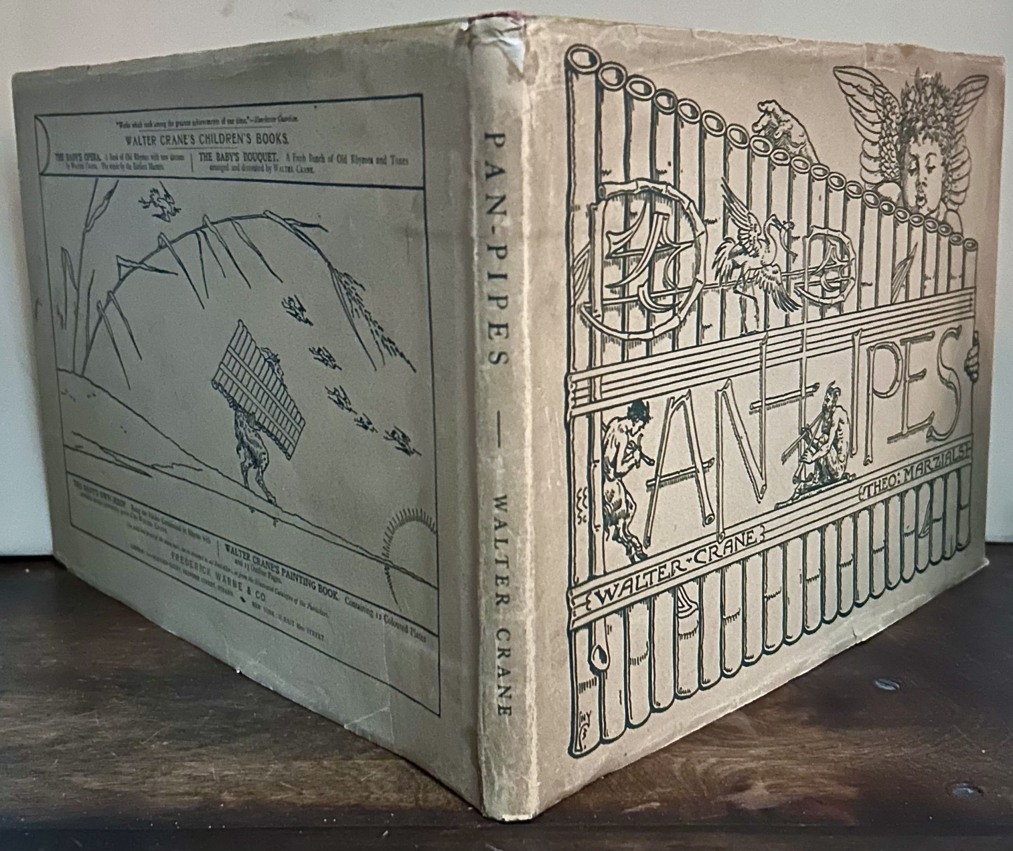 London: George Routledge & Sons, 1883. First edition. Hardcover. Orig. maroon cloth spine and illustrated boards decorated endpapers and beveled edges. Fine in very good dust wrapper nicked at head, and recreates front cover design of the book in tan.. Crane, Walter. 52 pages. 22 x 31 cm. Crane explained the book was given its landscape format so that it could be propped up on a piano. Illustrated throughout by Walter Crane, printed from wood blocks by Edmund Evans. illustrations fresh and bright, interior contents almost as new. SPENCER p.203.