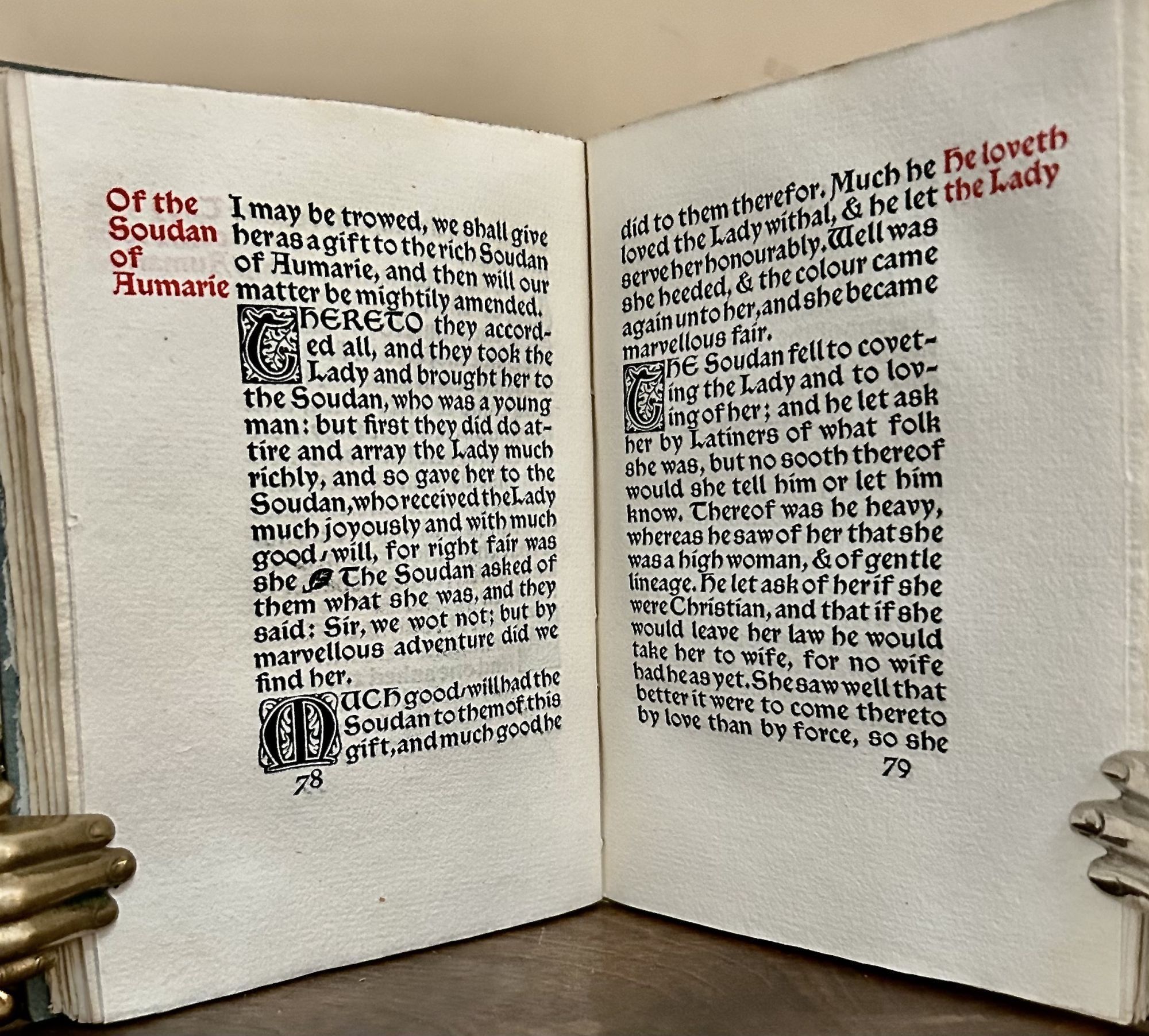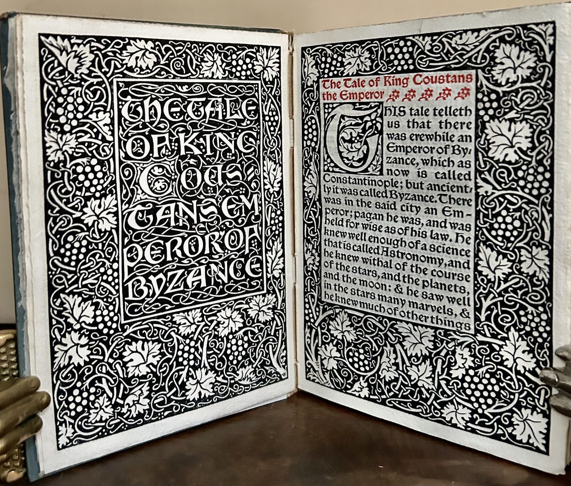 Upper Mall, Hammersmith: Kelmscott Press, 1894. Hardcover. Original holland-backed boards. Near fine. 130 pages. 16mo, 15 x 11 cm, printed in Chaucer type, in black and red, and is uniform in size with the romances from the French -- in this instance two tales. Limited edition, one of 525 copies. The first of these stories, which was the source of "The Man Born To Be King" in THE EARTHLY PARADISE was announced as in preparation in the list of March 31, 1894. FORMAN (153) notes "Page 39 is a half-title" for the start to the second title, THE HISTORY OF OVER SEA. SCOTT, p.98. Armorial bookplate George Allison Armour. Text bright and clean, tiny nick at backstrip head.