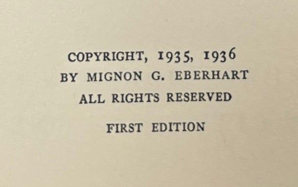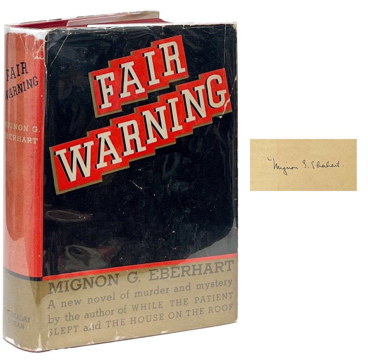 Garden City: Doubleday, Doran & Company, Inc, 1936. First Edition. Hardcover. Near Fine/Good. Signed by Eberhart on the front endpaper. Near Fine in a Good jacket, unclipped ($2.00), faded at the spine, generally worn with chips and tears at the edges. Red cloth, lightly pushed at the head and foot of the spine, with black ink panels on the spine. Square and firmly bound with a red top stain, clean internally. Eberhart's mystery novel involving the murder of a husband in an unwanted marriage.