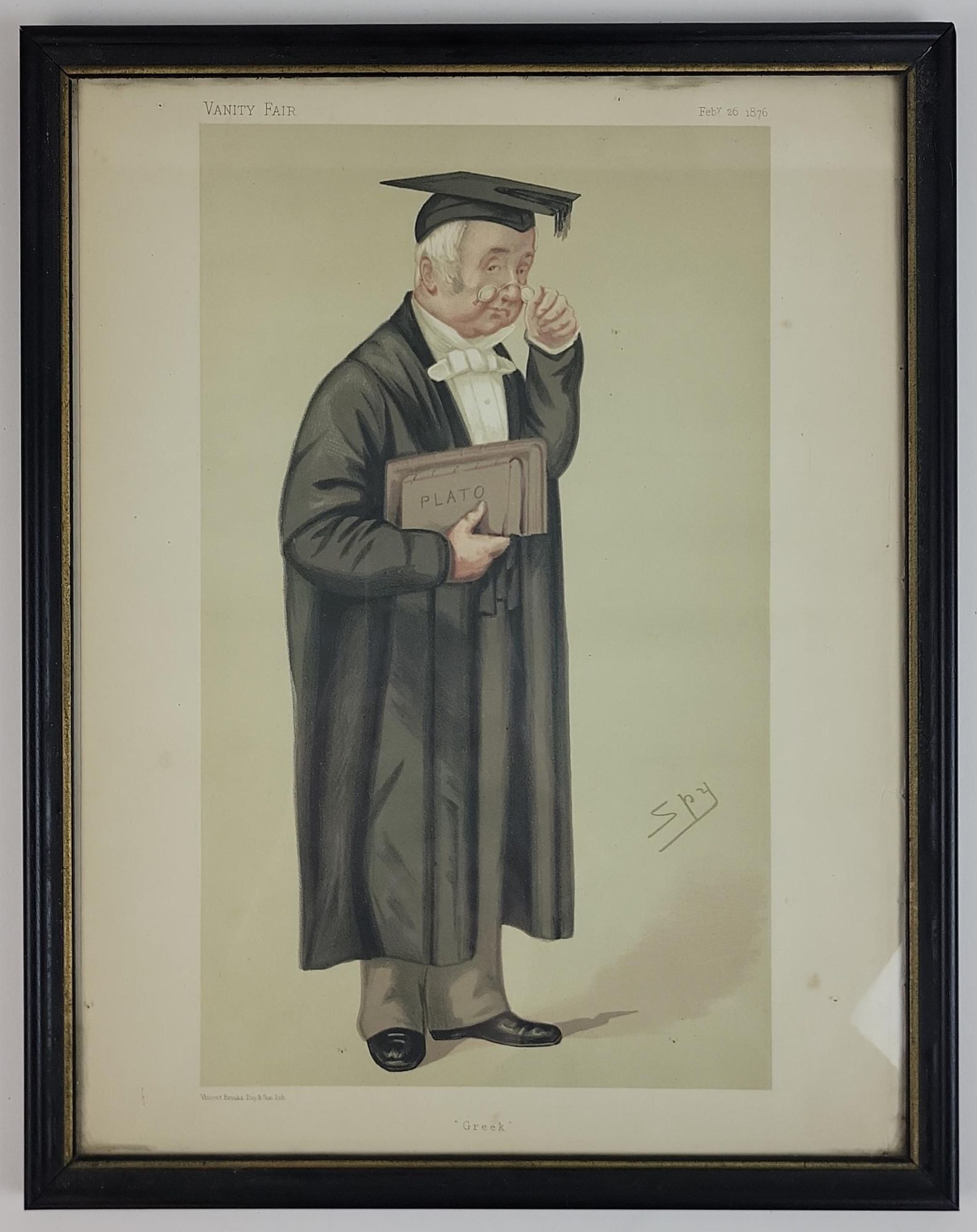 United Kingdom: Vincent Brooks Day & Son, 1876. Lithograph print, ink on paper. In Very Good condition, in a Poor wood frame. Print measures w. 10 in. x h. 13.5 in. Frame measures w. 11.5 in. by h. 14.75 in. Significant wear to frame, backing damaged. Minor age toning and soiling to print. Unsigned. Vanity fair article on frame backing, adhered with non archival tape. Item no. L027. EH consignment. Shelved Rockville. 1391847. Arts & Antiques.