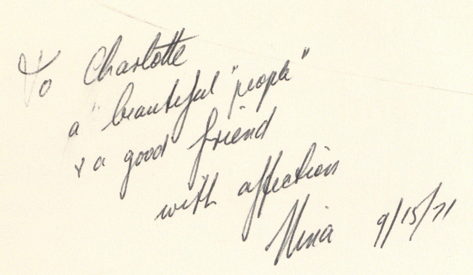 New York: Harper & Row, 1971. Hardcover. Fine/Very Good. First American edition. Pictorial boards. Translated by Nina Ignatowicz. Large thin octavo. Illustrated. Fine in modestly toned, very good or better dust jacket. Inscribed by the translator to Charlotte Zolotow: "To Charlotte, a 'beautiful people' & a good friend with affection. Nina 9/15/71." Charlotte Zolotow was an editor and publisher at Harper’s celebrated children’s books department, and the acclaimed author of over 65 children’s books. She is credited for her contributions to the Children’s Liberation Movement which believed the rights and emotional concerns of children be recognized and treated as the equal of adults.
