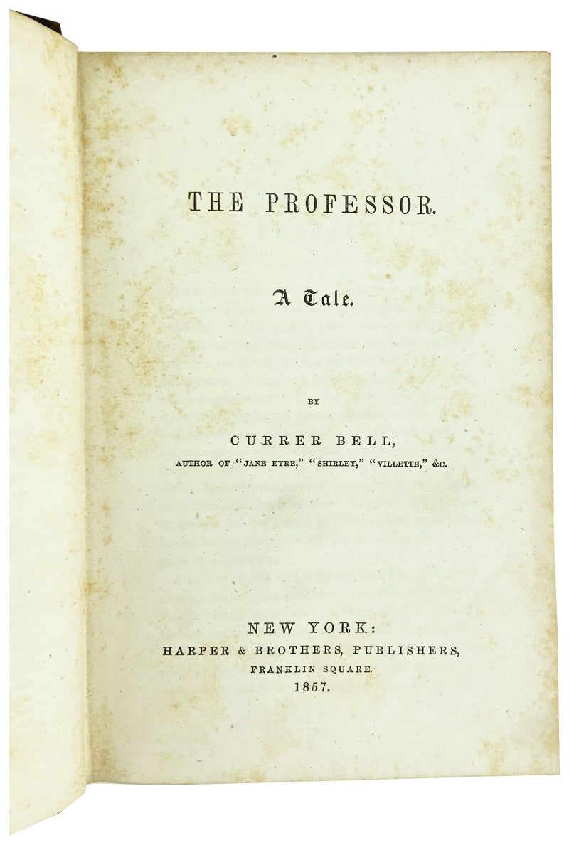 New York: Harper & Brothers, Publishers, 1857. Very Good -. New York: Harper & Brothers, Publishers, 1857. First American Edition. Octavo. 330pp.; 6pp. publisher's advertisements to rear; single page advertisement for "The Bronte Novels" preceding title. Publisher's brown cloth with spine stamped in gilt; yellow endpapers. Boards worn and scuffed; brief exposure to corners; fraying, chipping, and shallow loss to spine ends; spine a bit sunned and gilt dulled. Pronounced lean to boards but binding is sound. Ownership inscription and brief bookseller scribbling to front free endpaper; spotting to pages but legible throughout. Overall a Good to Very Good copy of Charlotte Bronte's first novel written, only published posthumously after her untimely death in 1855.